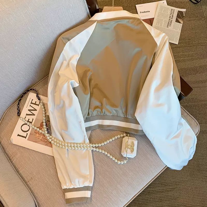 Retro Hong Kong style chic baseball jacket for women 2023 new spring and autumn short style fried street jacket top