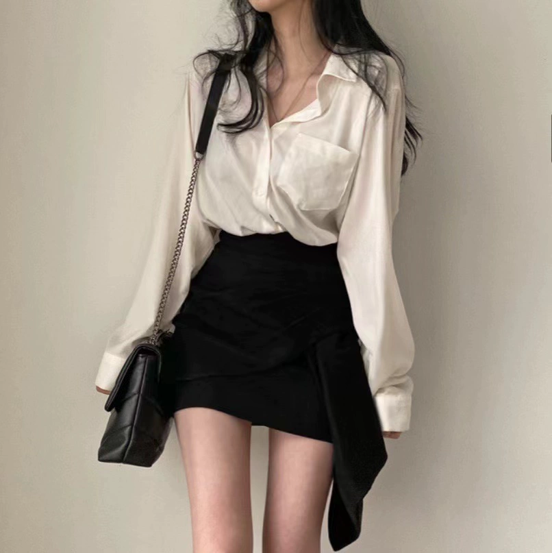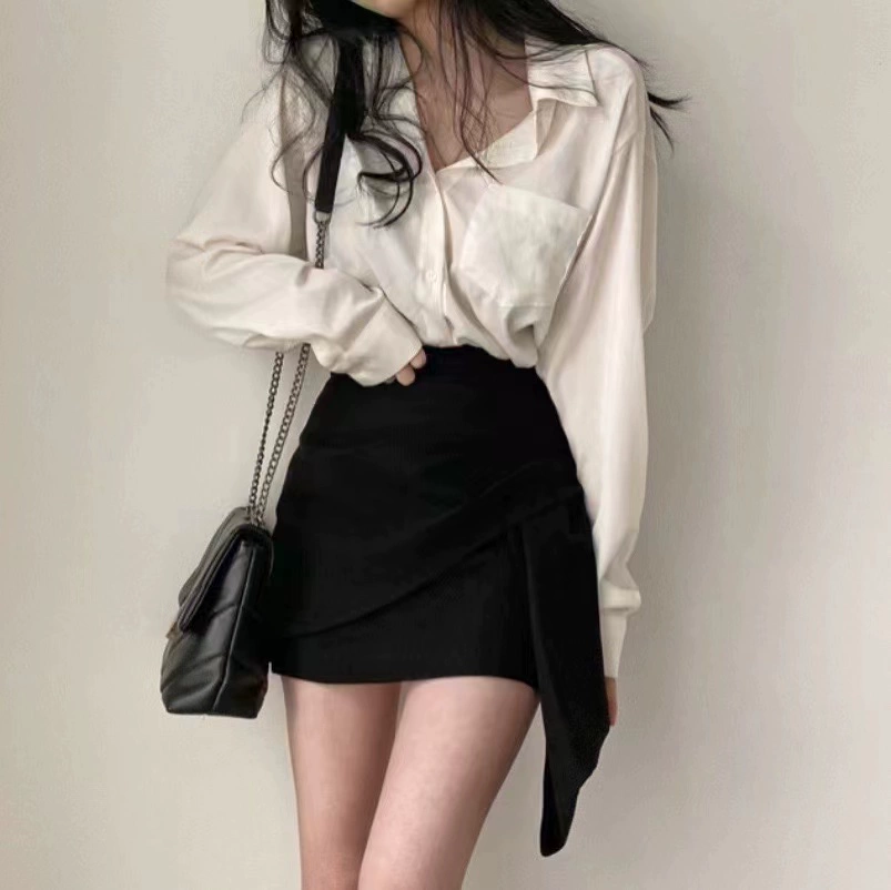 Retro Hong Kong style new spring and autumn long-sleeved white shirt