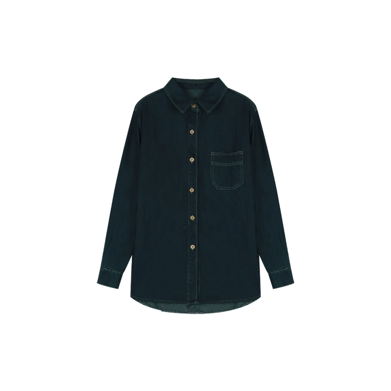 Retro Hong Kong Style Polo Collar High Waist Loose Denim Shirt