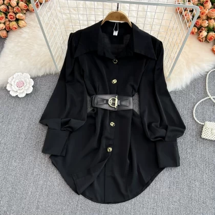 | nameOriginal | Retro Hong Kong style waist-cinching loose long-sleeved shirt |