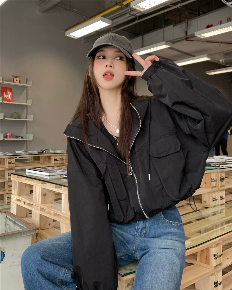 | nameOriginal | Retro hooded drawstring casual short cardigan jacket |