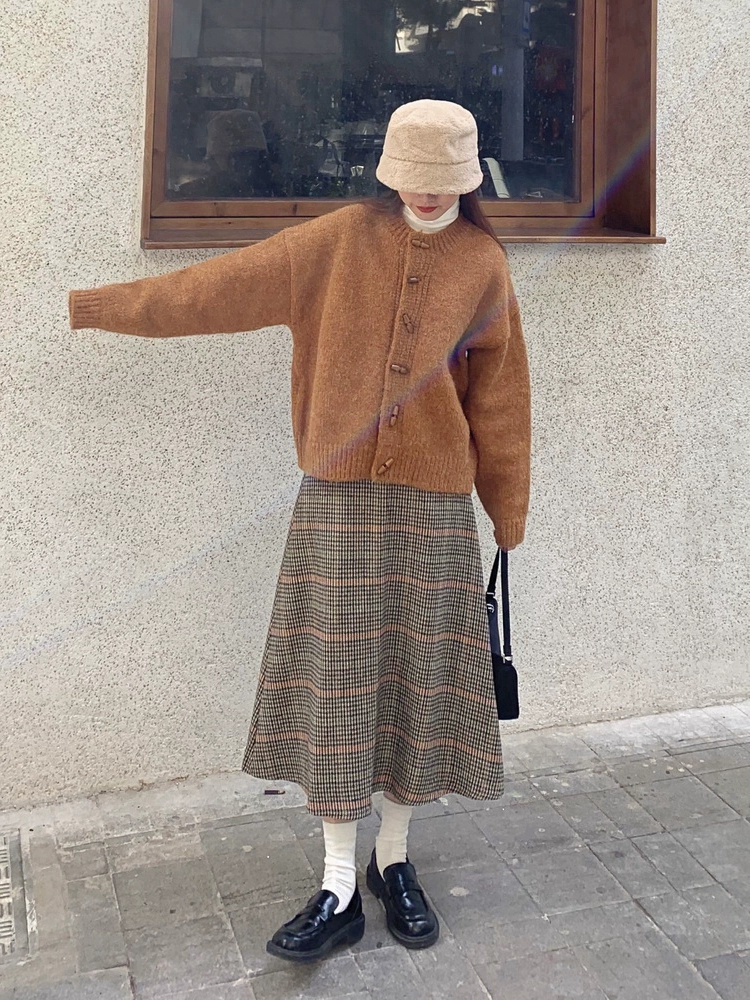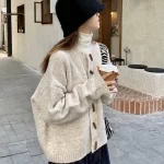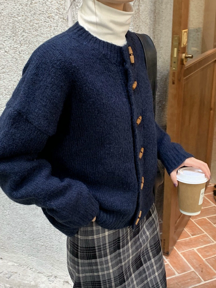 | nameOriginal | Retro horn button sweater jacket for women in autumn and winter Korean style lazy style warm thickened knitted cardigan for outer wear |
