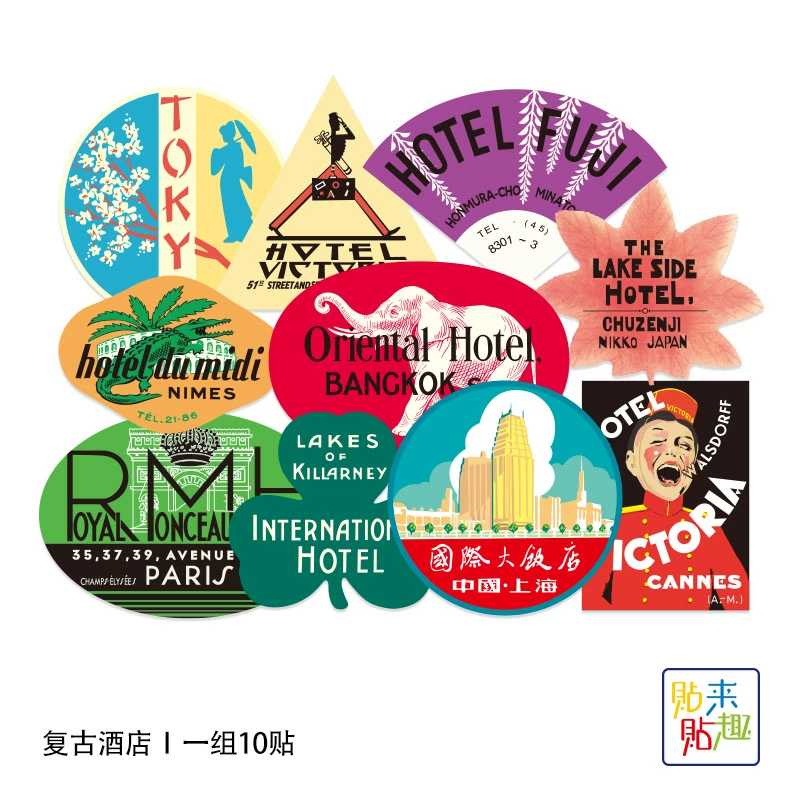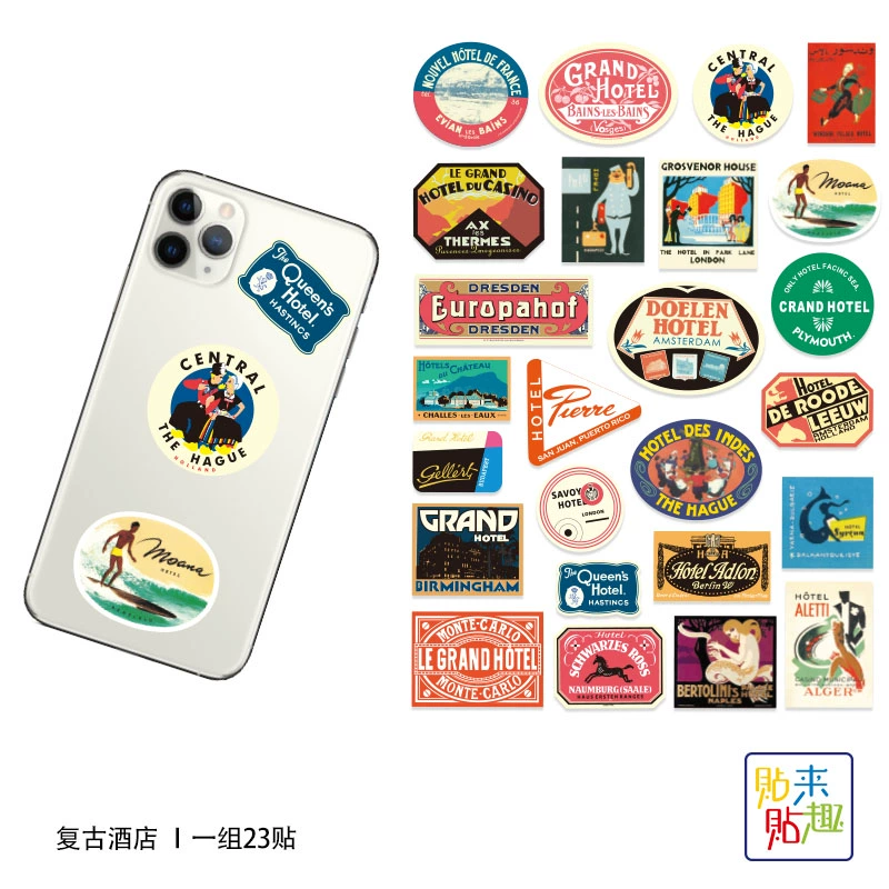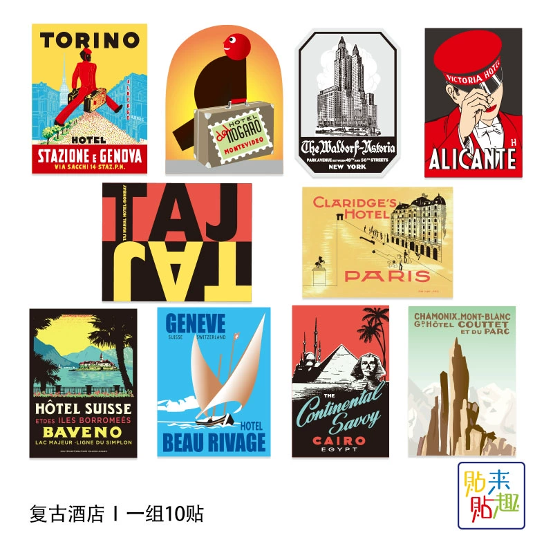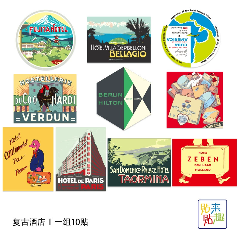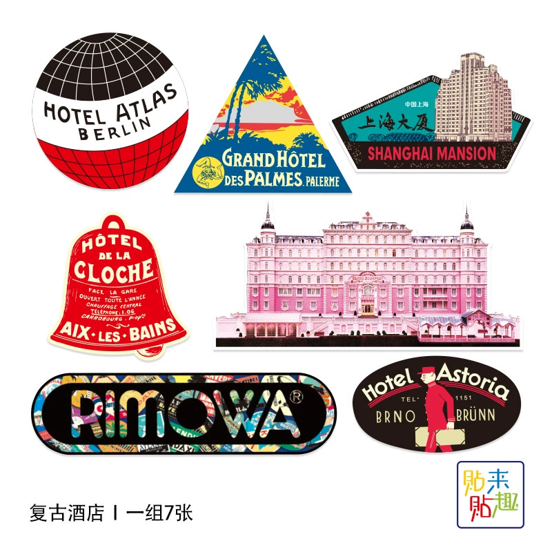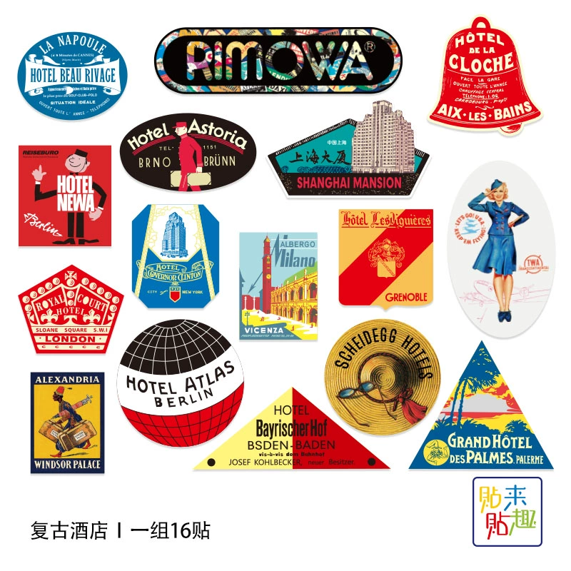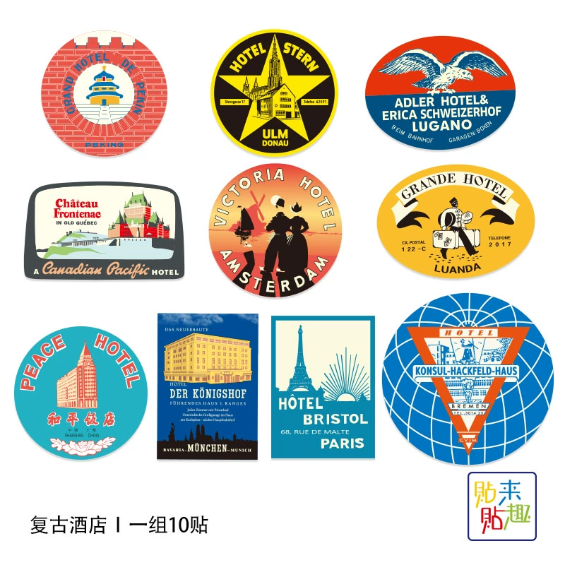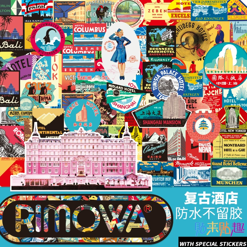 | nameOriginal | Retro hotel literary nostalgic suitcase travel bag stickers personalized trendy storage box refrigerator door and window decoration stickers |