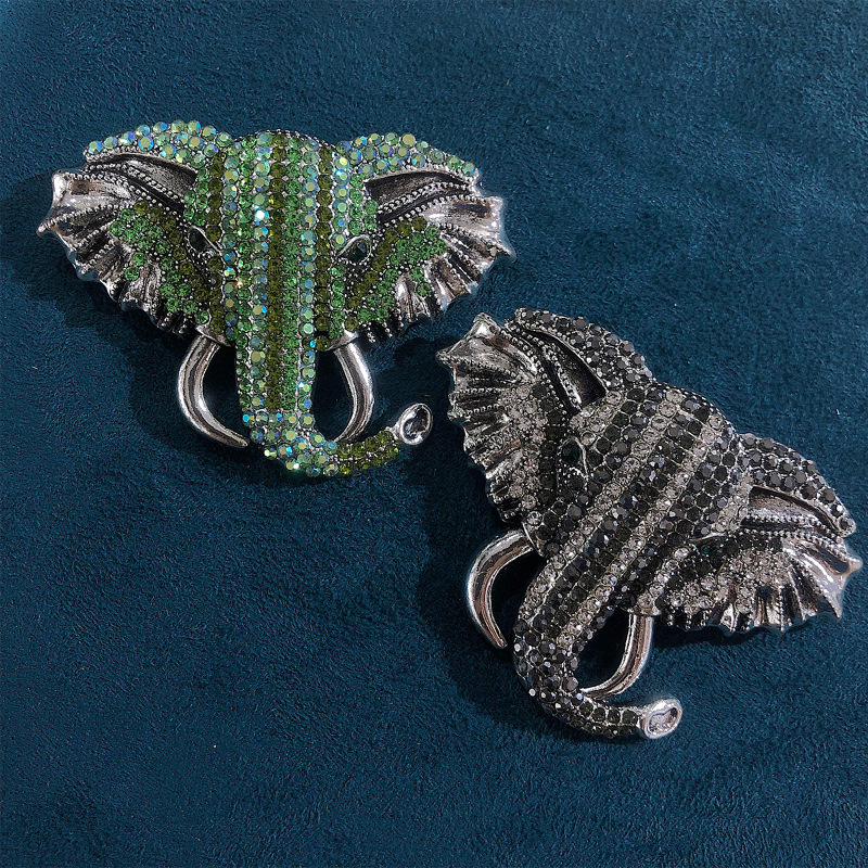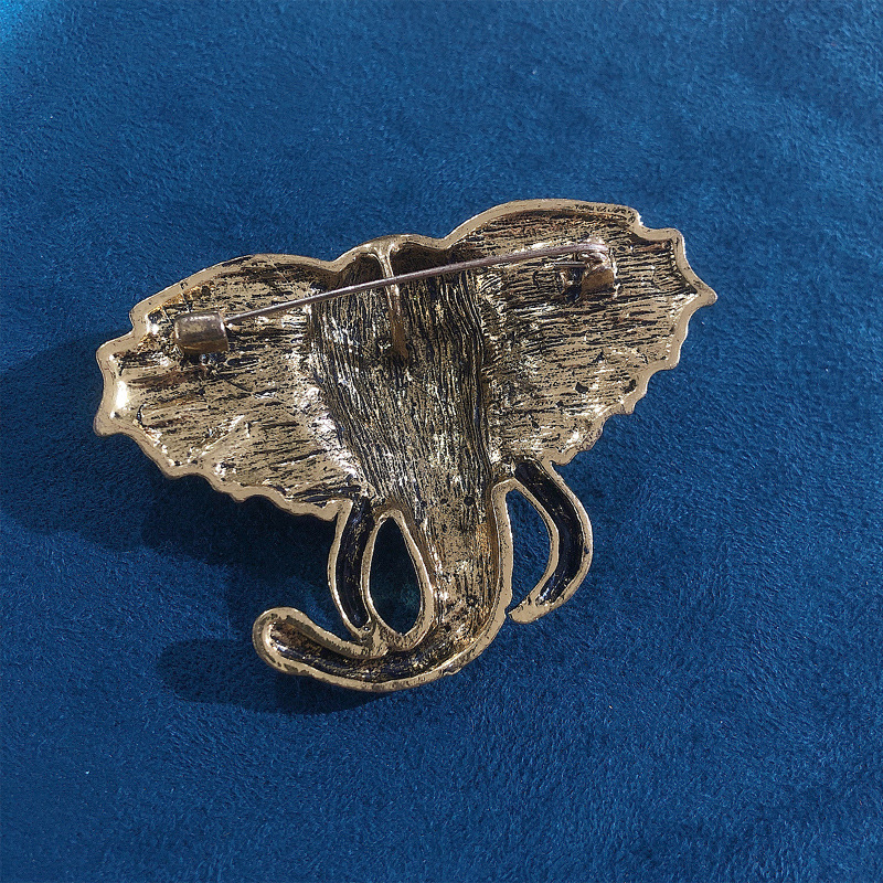 | nameOriginal | Retro Indian Style Elephant Head Brooch Diamond Animal Pin Men's Banquet Suit European and American New Accessories |