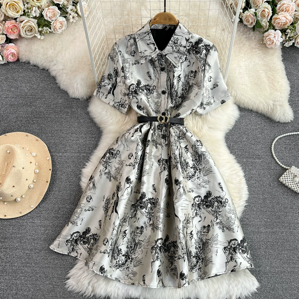 | nameOriginal | Retro ink painting printed organza dress with short sleeves |