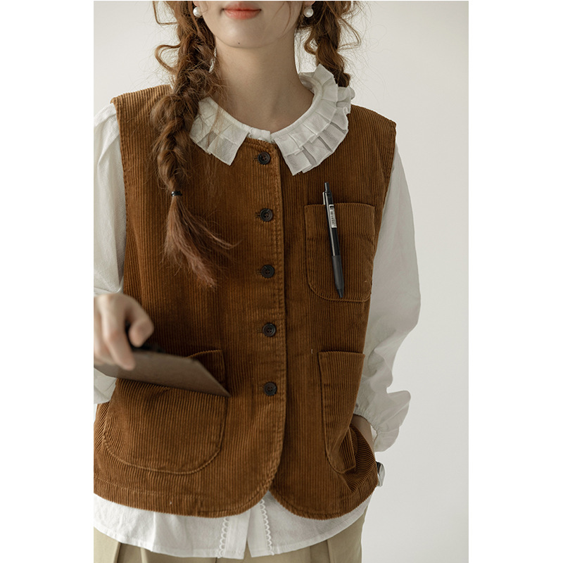 | nameOriginal | Retro Japanese corduroy vest coat for women 2024 spring niche design sense small vest vest vest top |