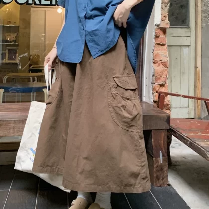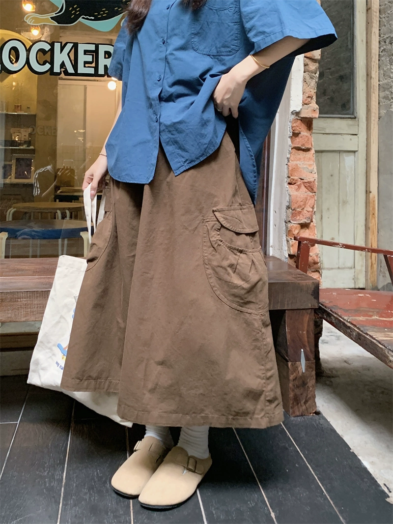 Retro Japanese elastic waist workwear women's summer short sleeves