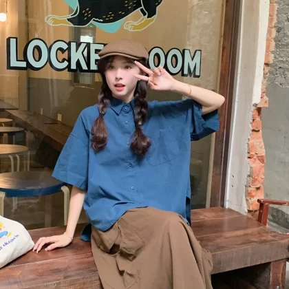 Retro Japanese elastic waist workwear women’s summer short sleeves