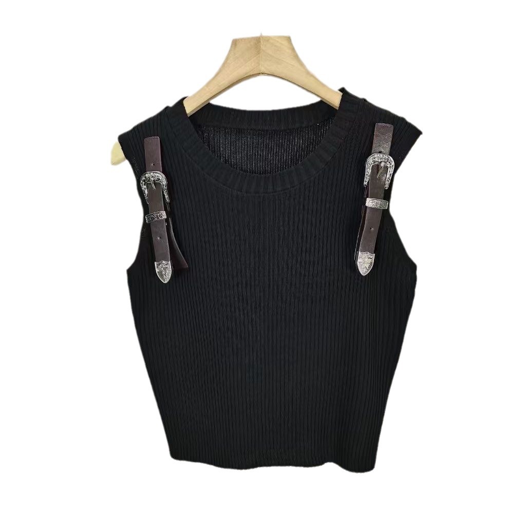 | nameOriginal | Retro knitted halter small camisole women's sweet and spicy 2024 American sexy match French style women's inner black New |