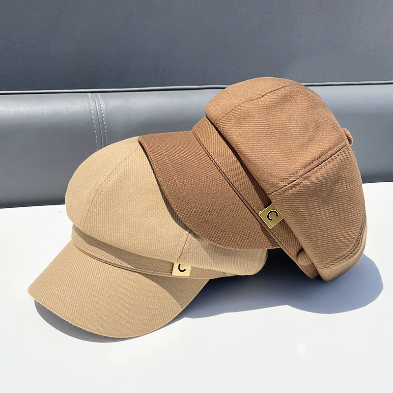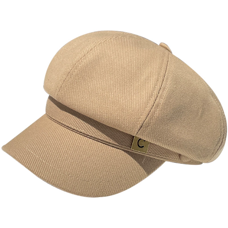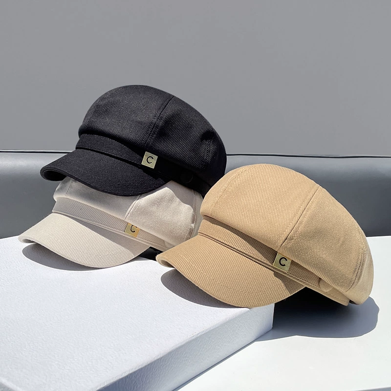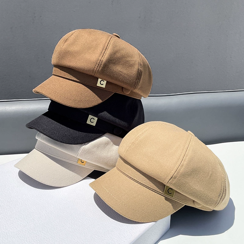 Retro Korean New Style Letter C Label Newsboy Hat Women’s Autumn and Winter Short Brim Versatile Street Painter Octagonal Hat Trendy