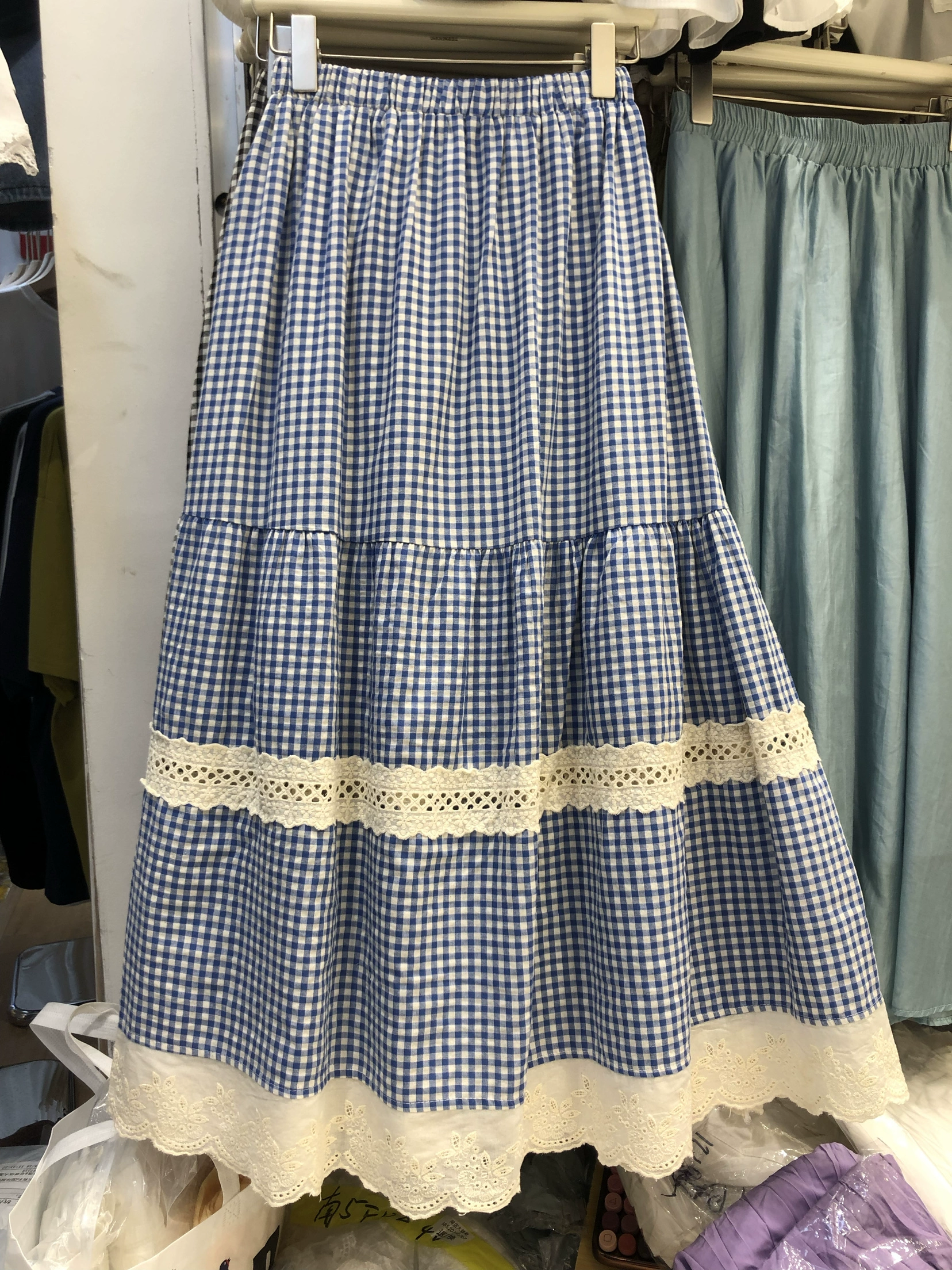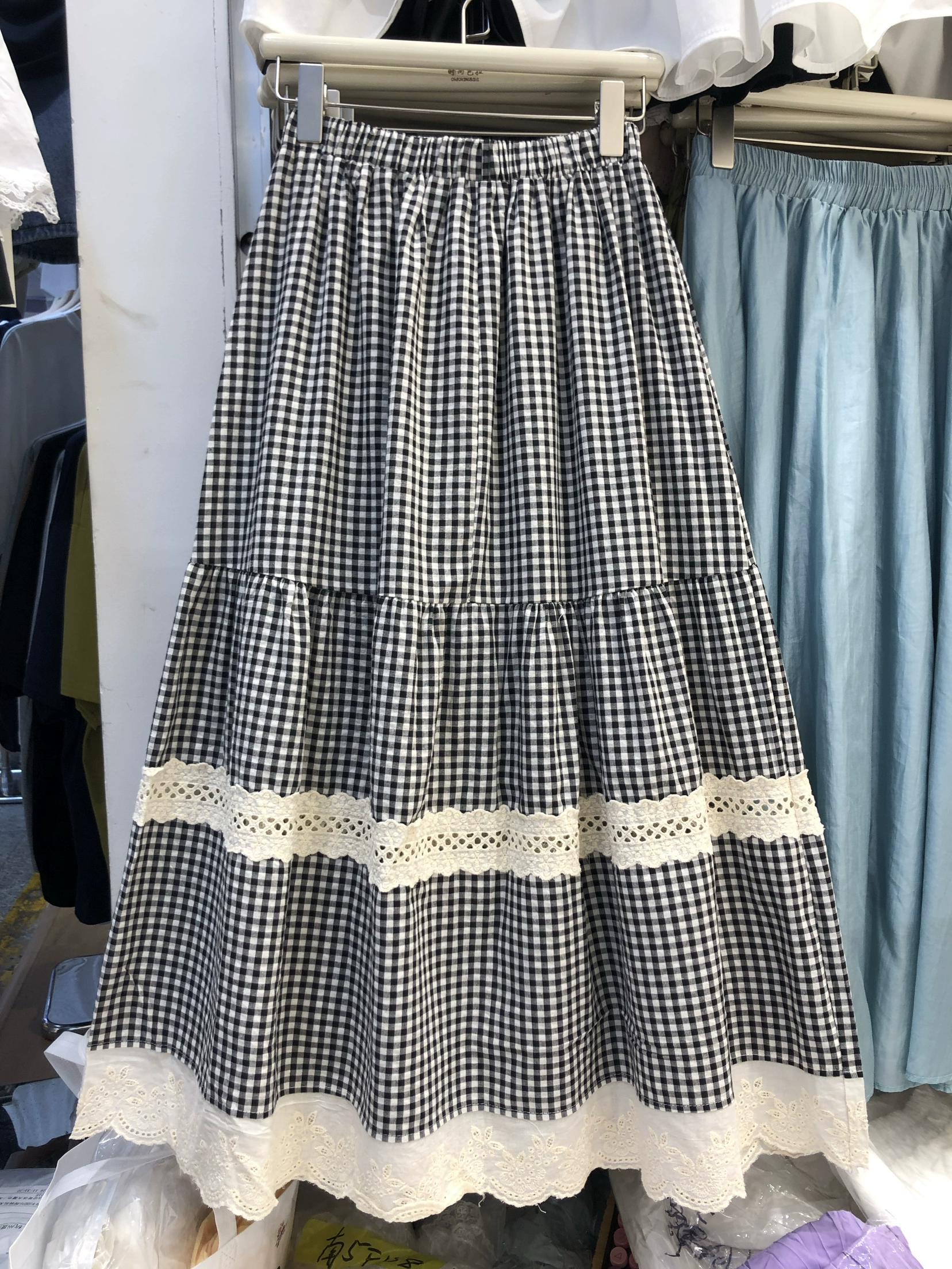| nameOriginal | Retro lace plaid patchwork long skirt with lace |