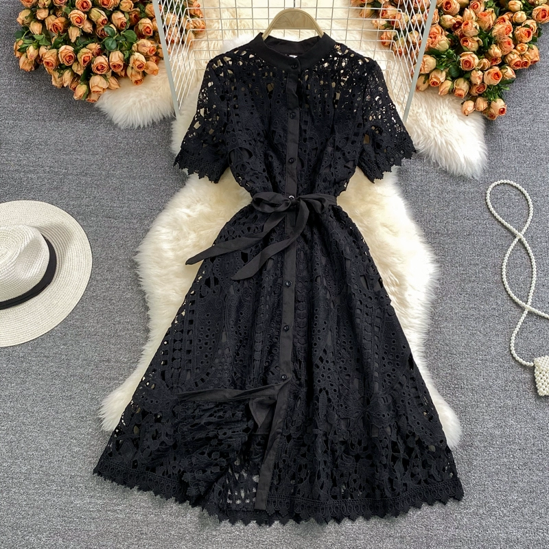 | nameOriginal | Retro lady hollow lace dress summer dress |