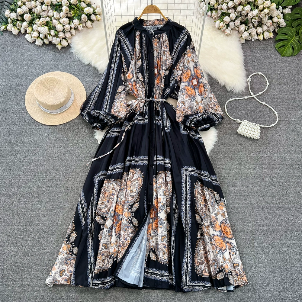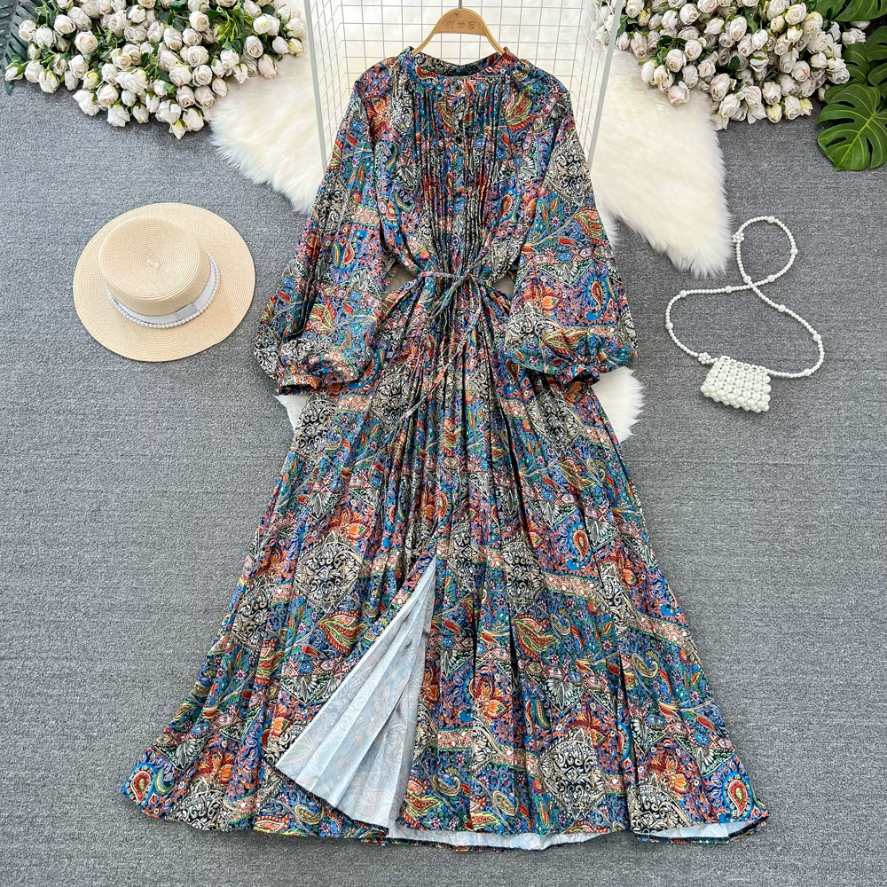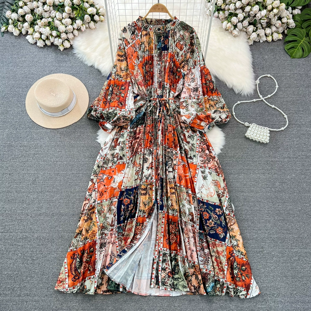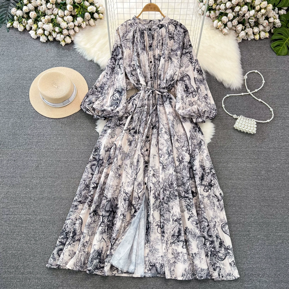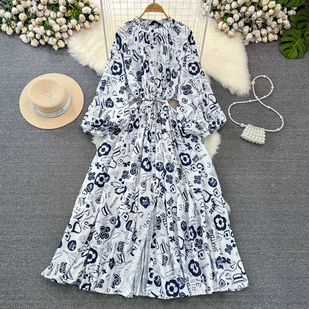| nameOriginal | Retro lantern long sleeve positioning print dress |
