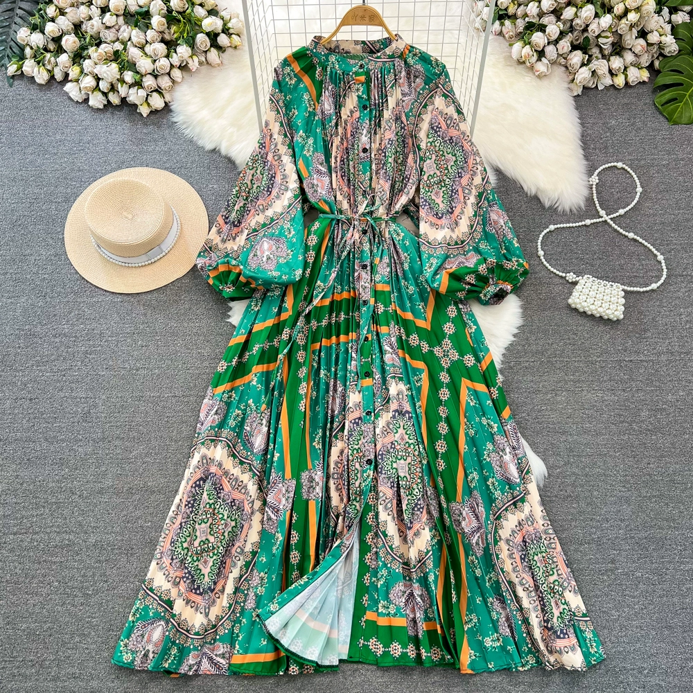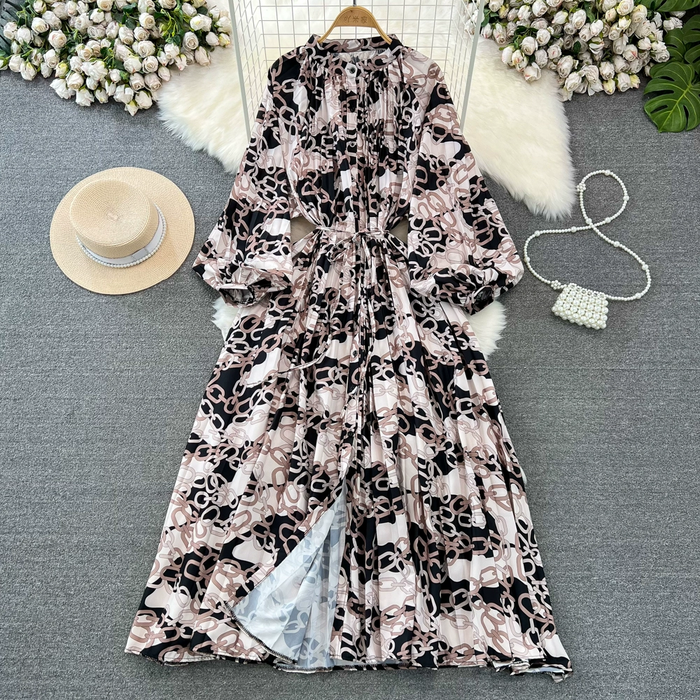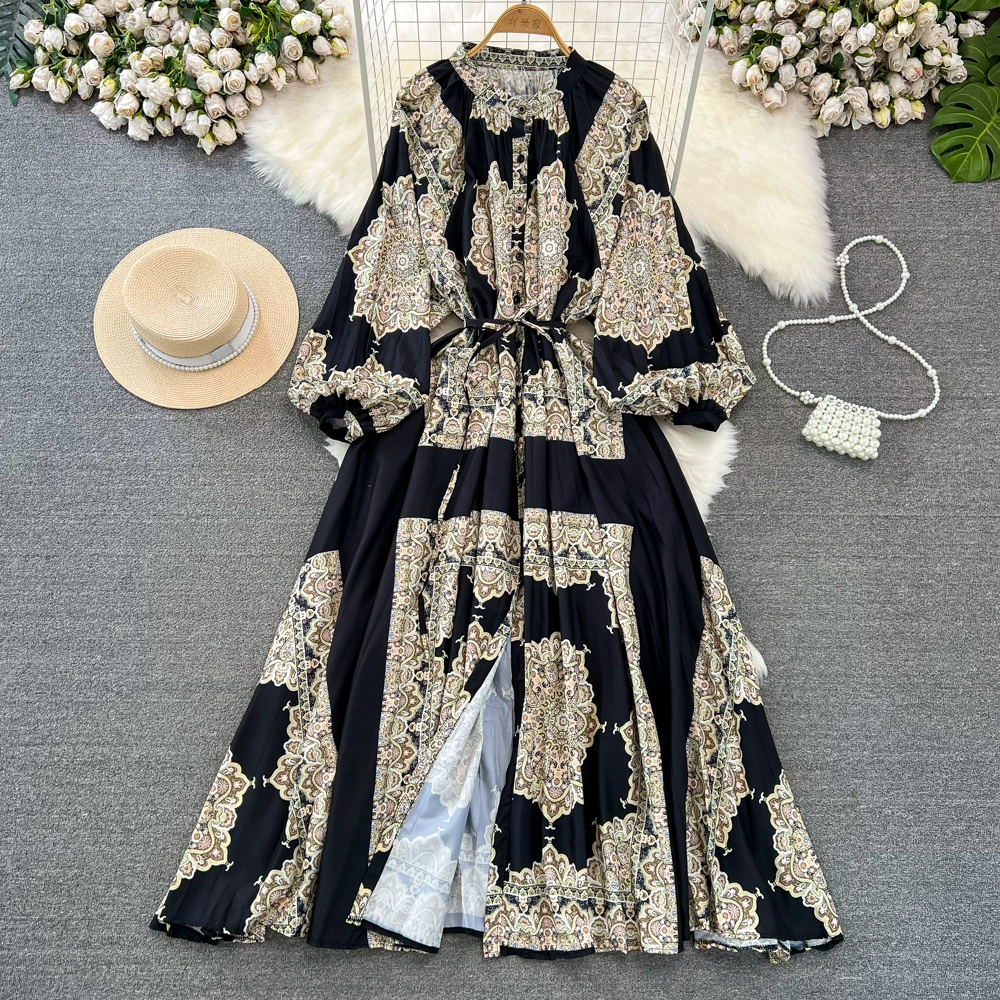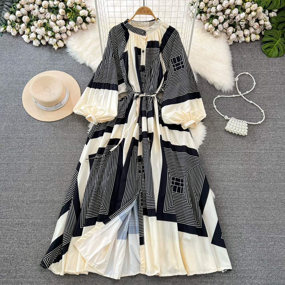 | nameOriginal | Retro lantern long sleeve positioning print dress |