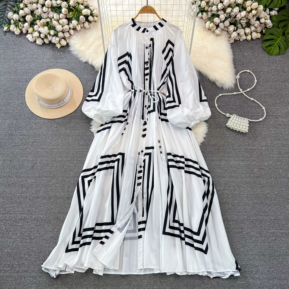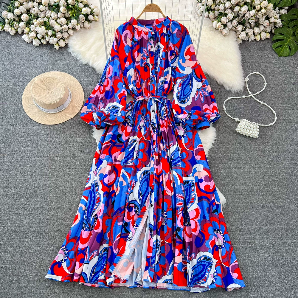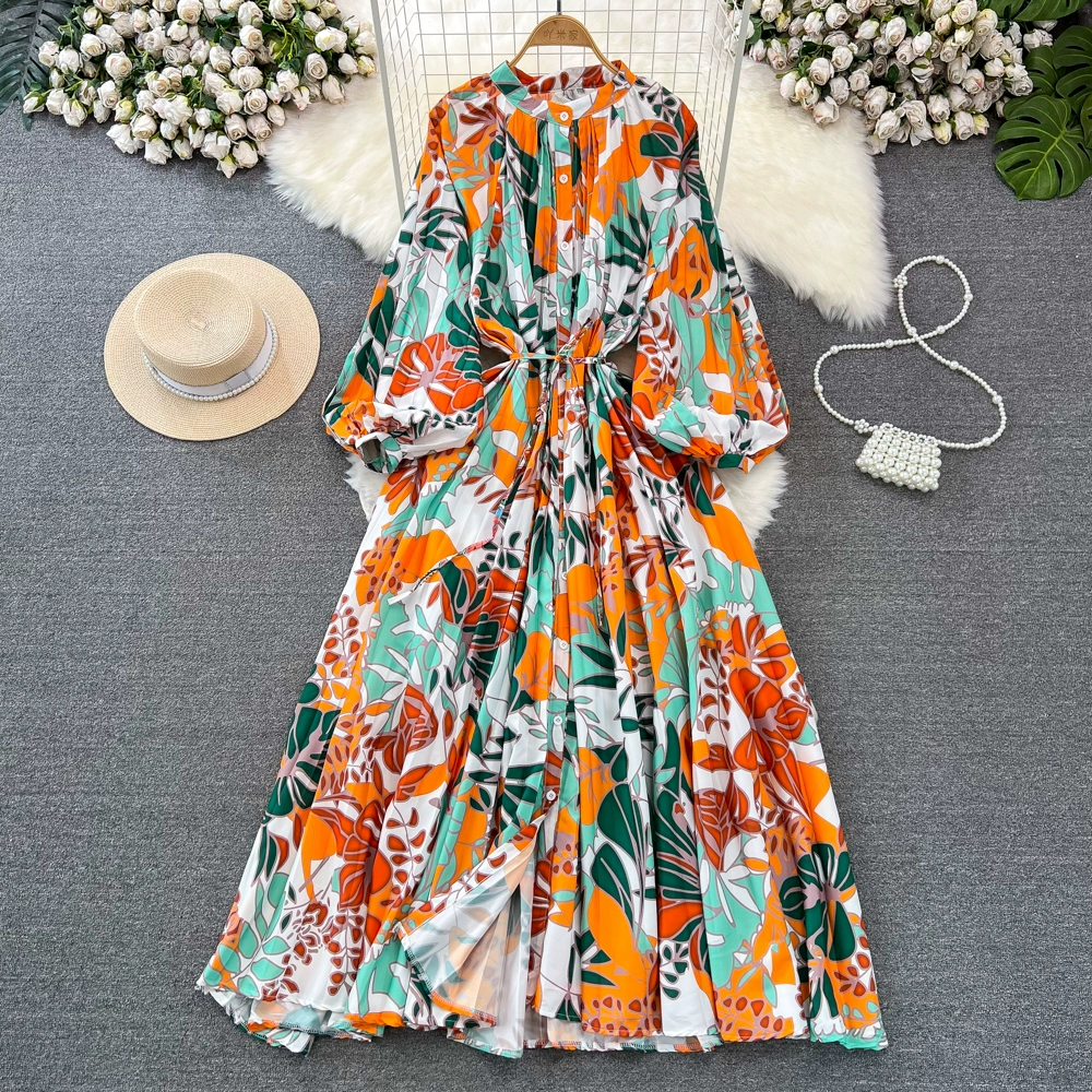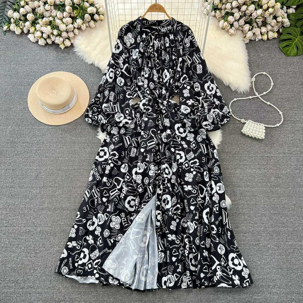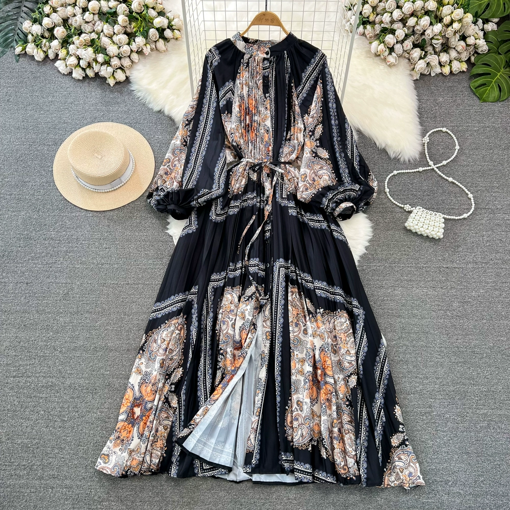 | nameOriginal | Retro lantern long sleeve positioning print dress |