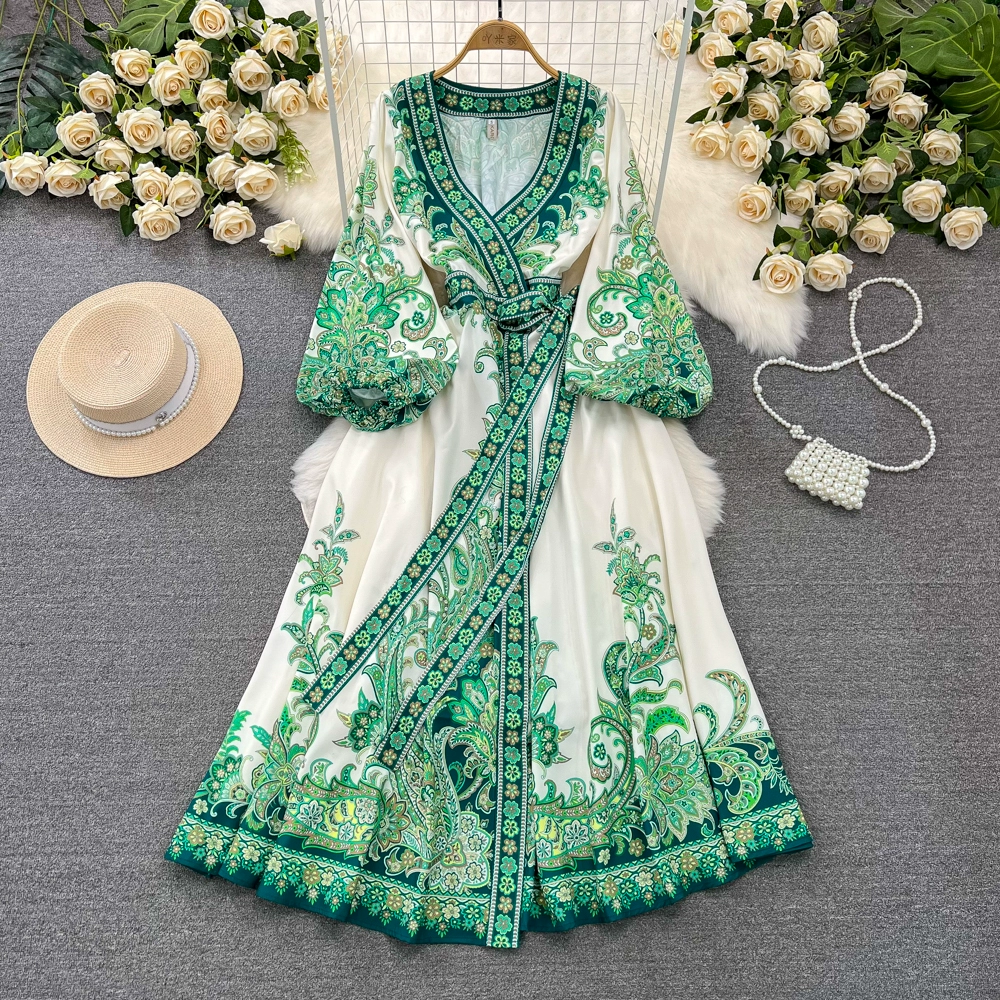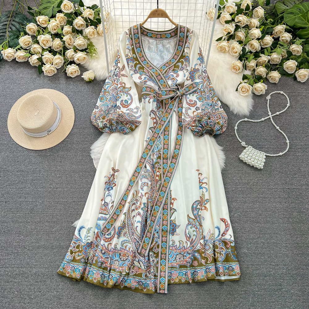 | nameOriginal | Retro lantern long sleeve positioning print dress |