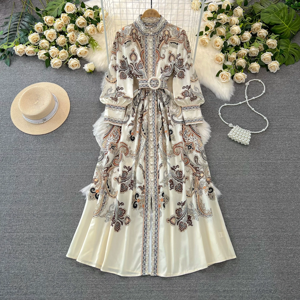 Retro Lantern Long Sleeve Single Breasted Dress Gown