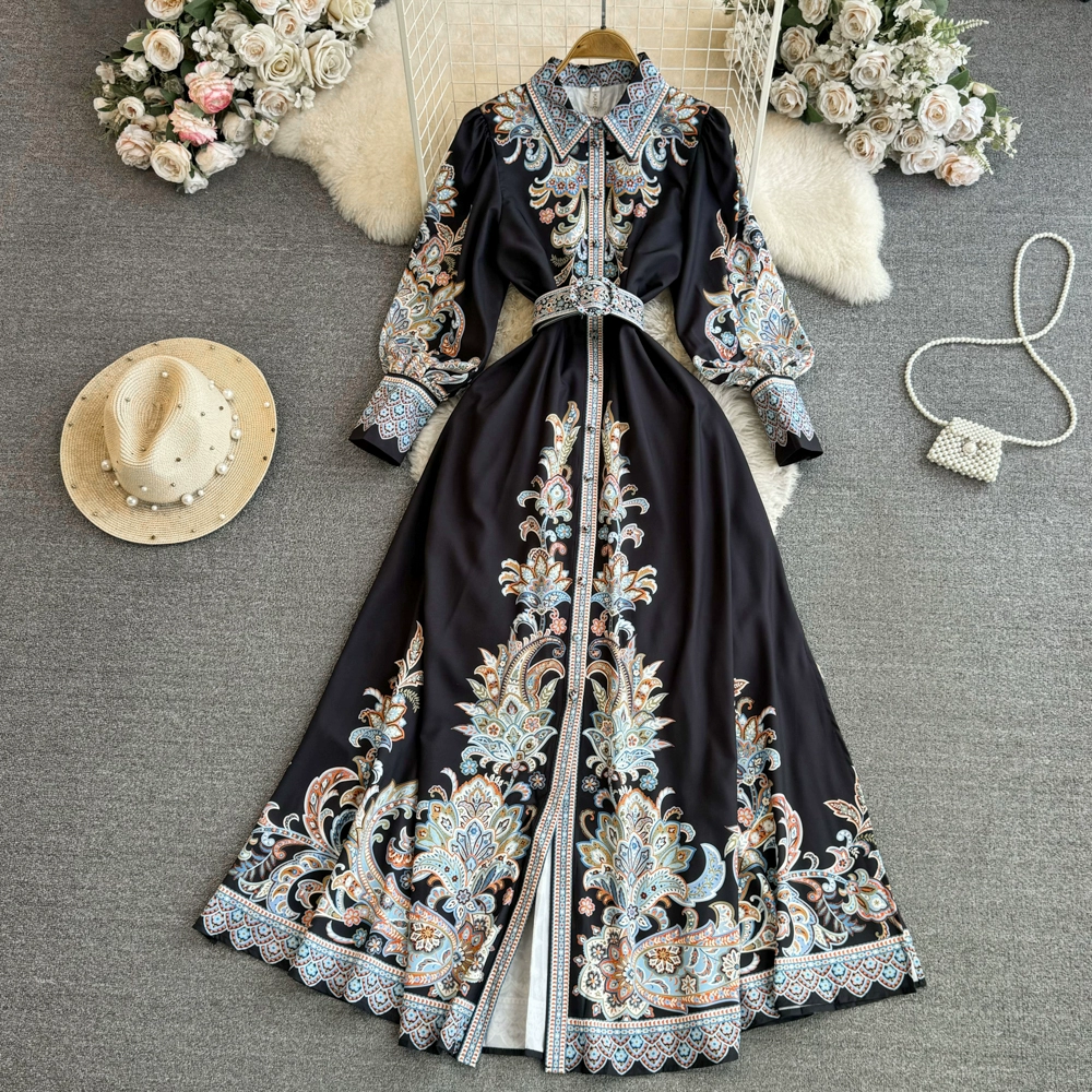 | nameOriginal | Retro Lantern Long Sleeve Single Breasted Printed Dress |