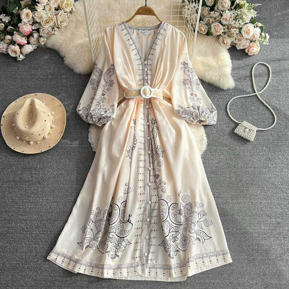 | nameOriginal | Retro lantern long-sleeved a-line printed dress |
