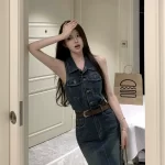| nameOriginal | Retro lapel denim summer tight hip skirt vest |