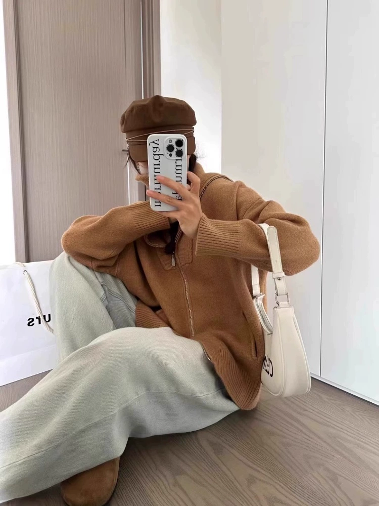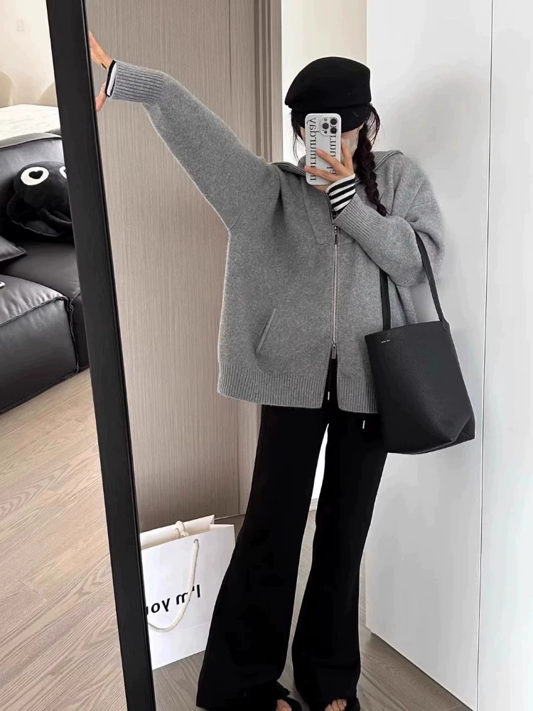 | nameOriginal | Retro lazy style loose lapel long-sleeved zipper knitted cardigan for women in autumn and winter slimming stand-up collar thickened sweater jacket |