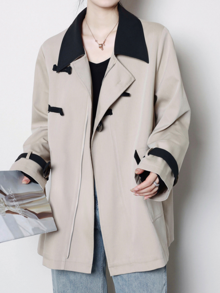 | nameOriginal | Retro leather buckle fat mm belly-covering slimming right-shoulder windbreaker |
