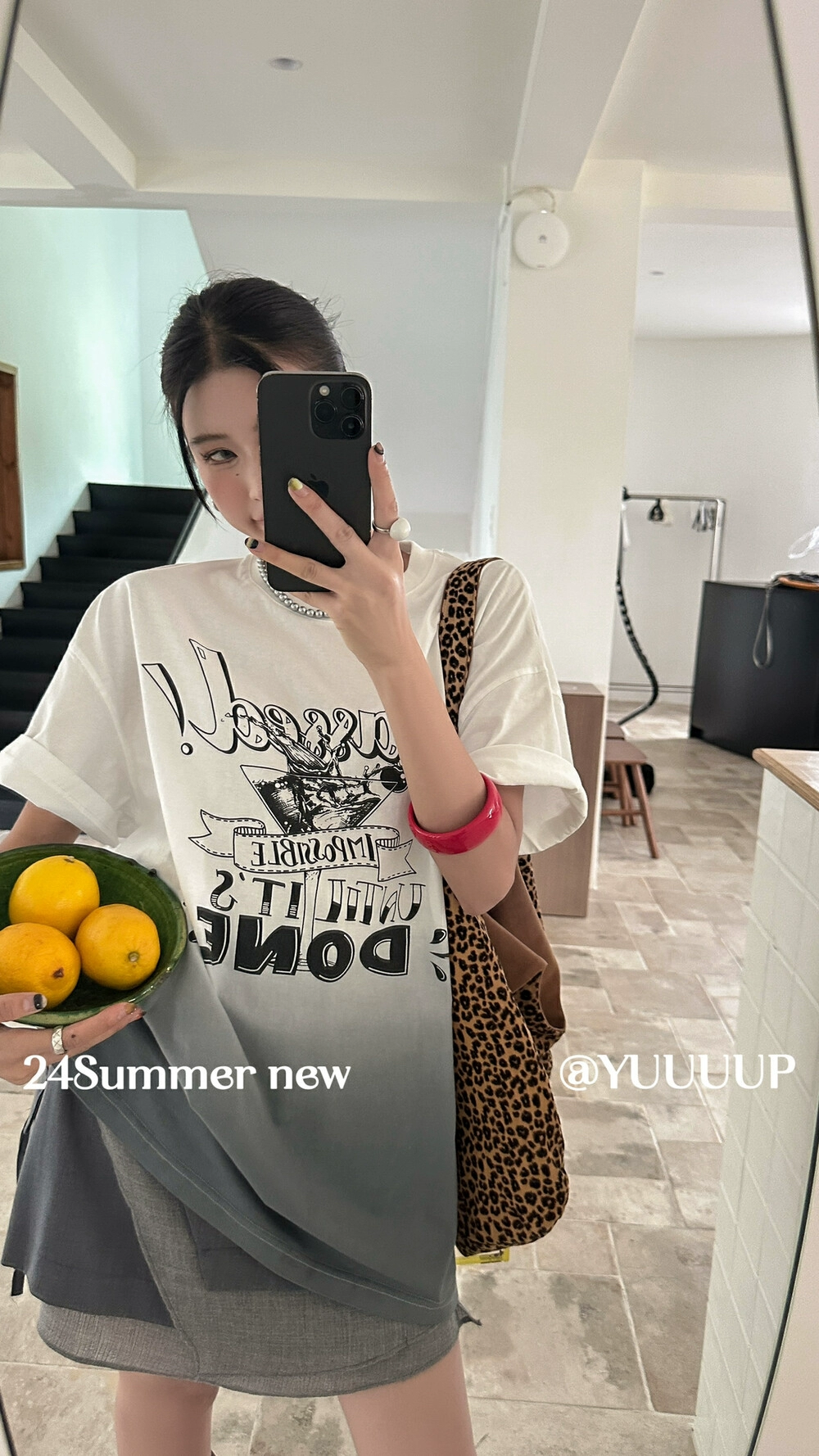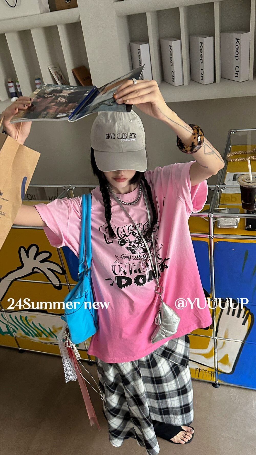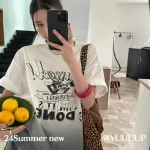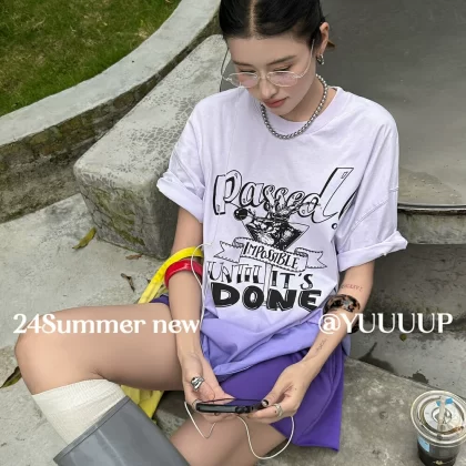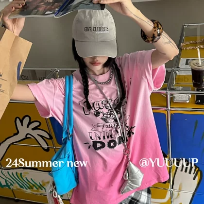 Retro letter print suspender dyed loose short-sleeved T-shirt