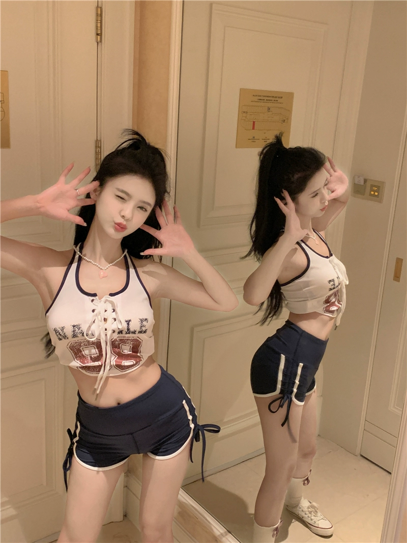 Retro lettering women’s flesh-covering slim fit camisole