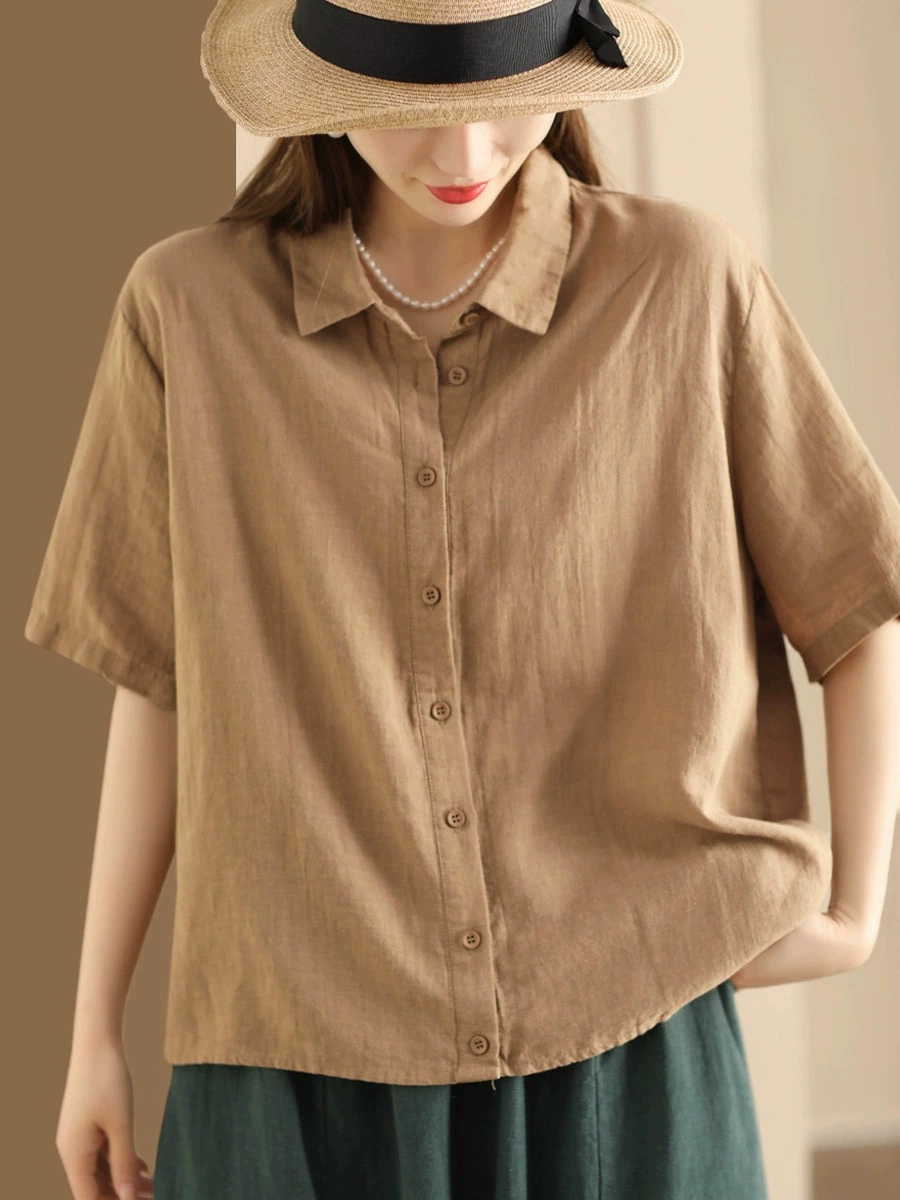 | nameOriginal | Retro light, loose and slim linen short-sleeved shirt |