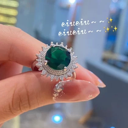 | nameOriginal | Retro light luxury style sparkling diamond imitation emerald ring women's high-end niche design flower studded diamond gemstone ring |