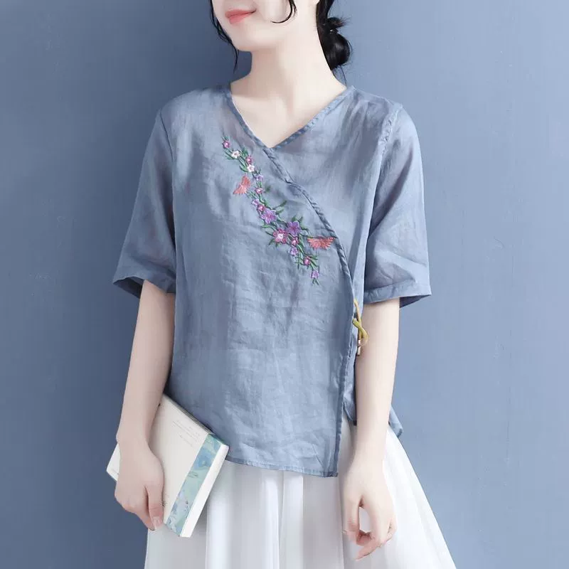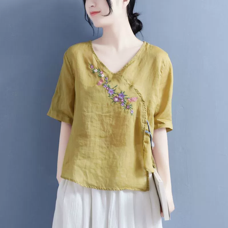 | nameOriginal | Retro linen embroidered short-sleeved ethnic style v-neck art |