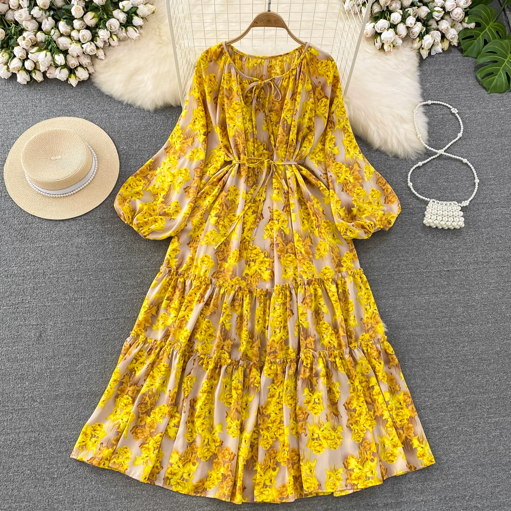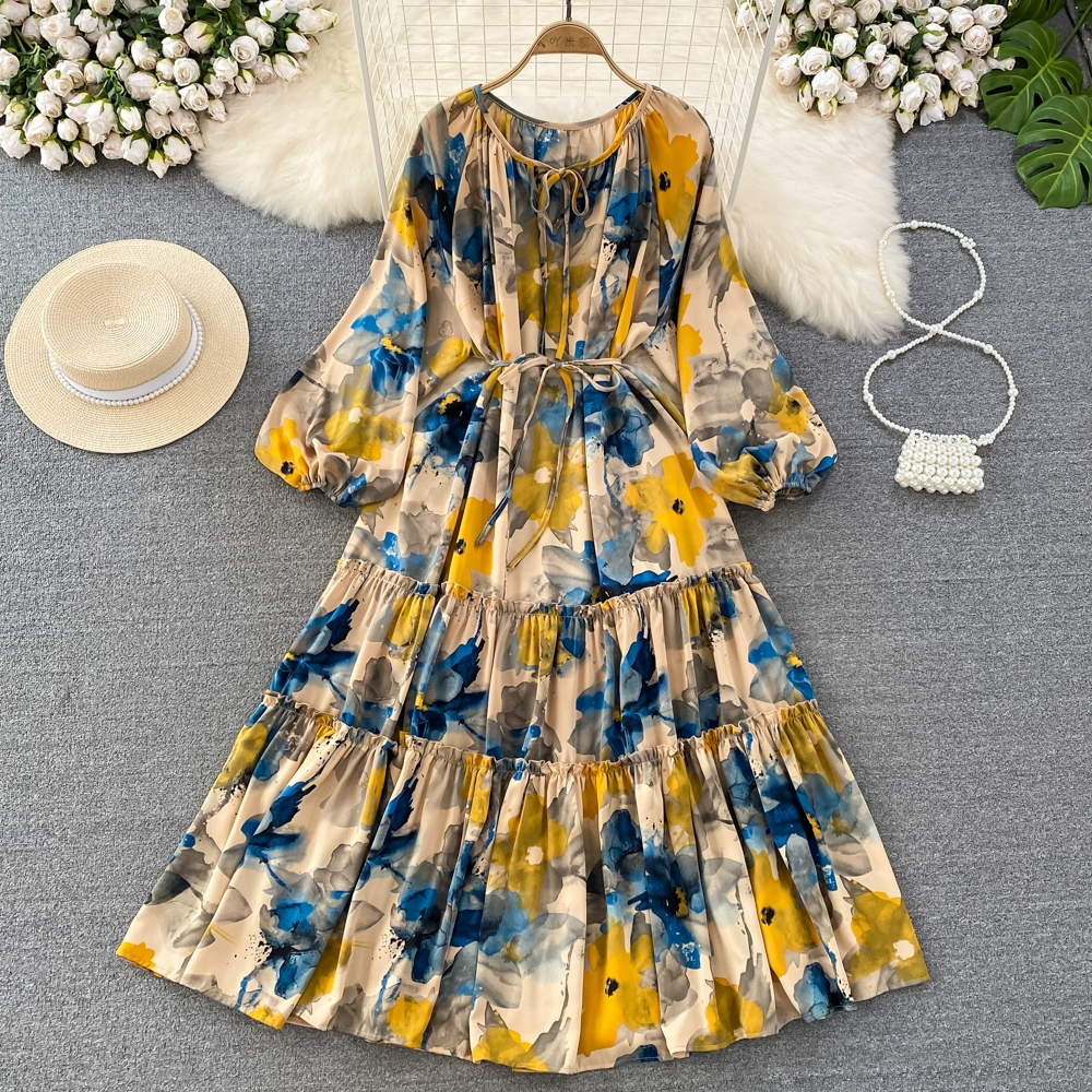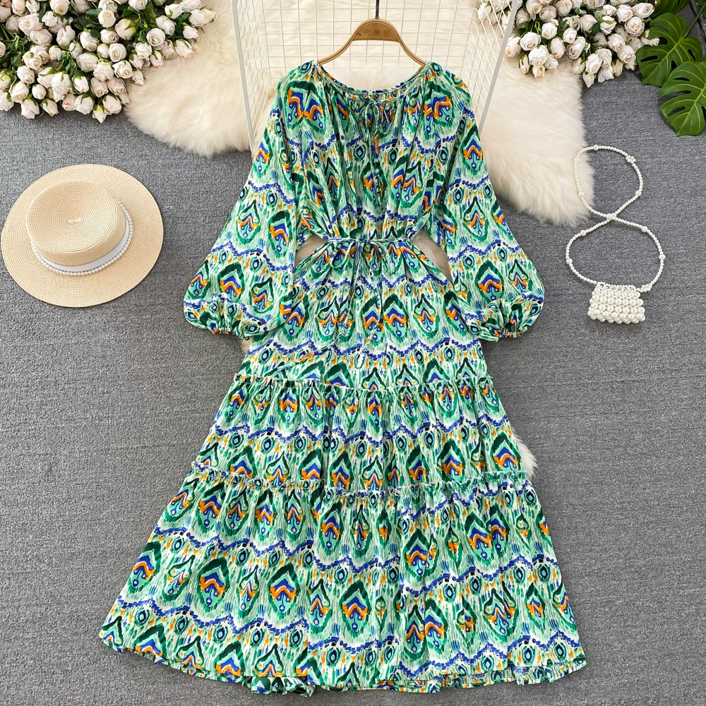 | nameOriginal | Retro long-sleeved a-line elegant large hem printed dress |