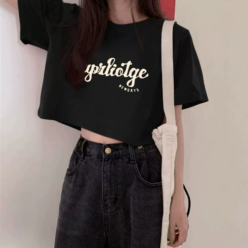 Retro loose shoulder women’s T-shirt short-sleeved tops