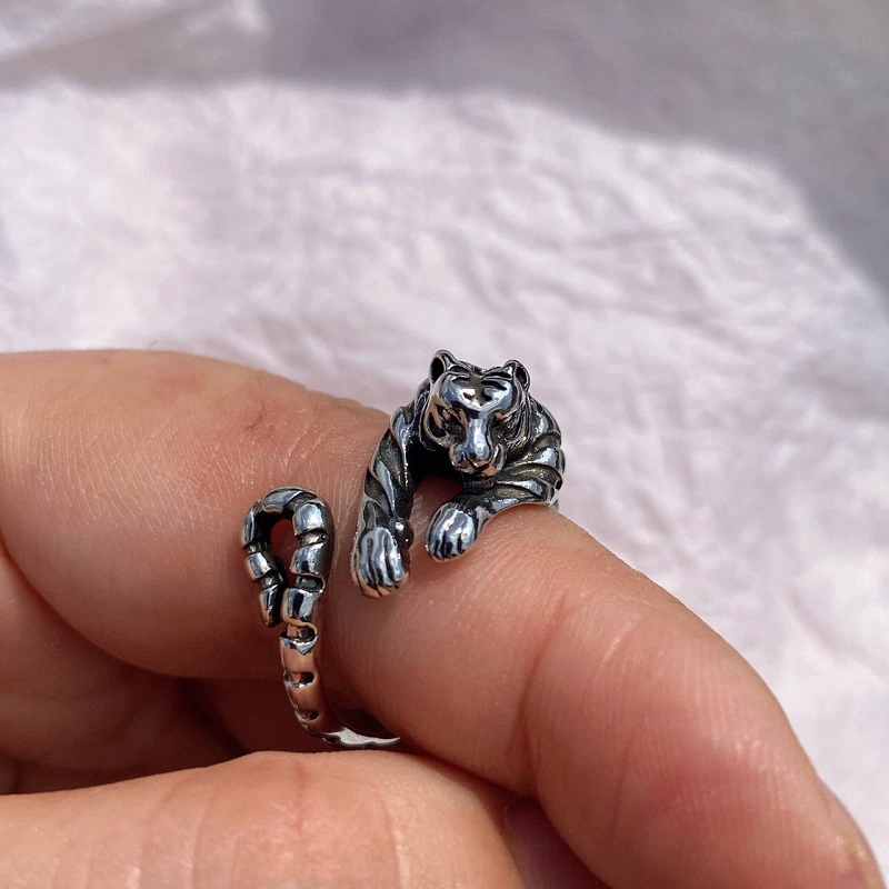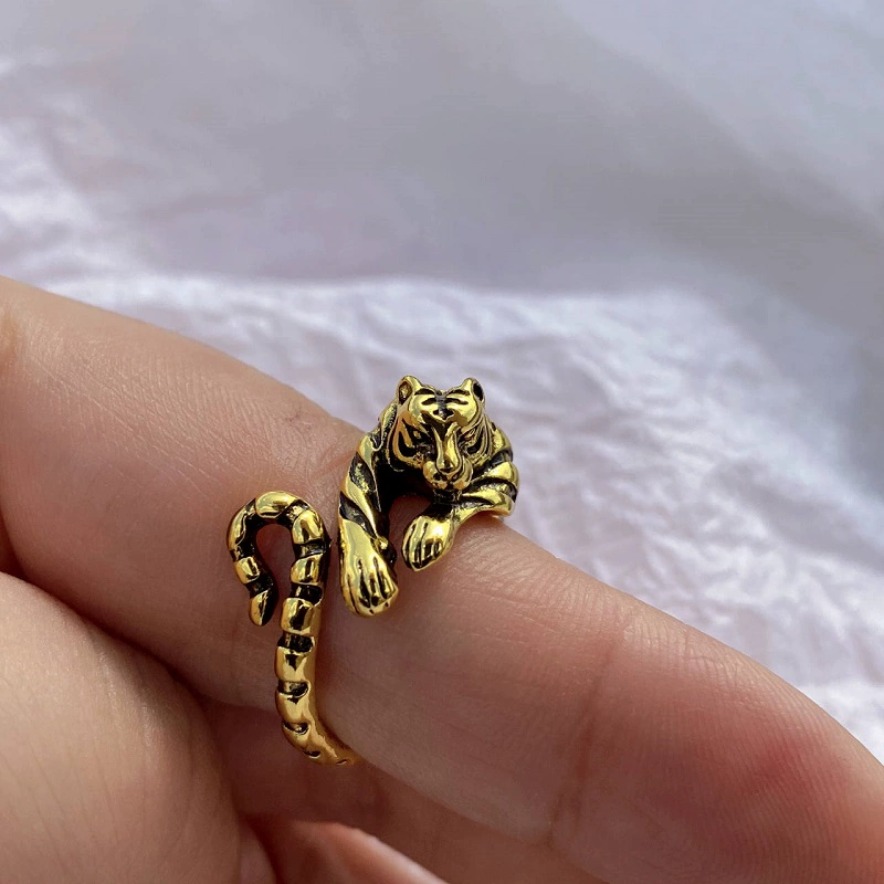 | nameOriginal | Retro men's and women's zodiac sign tiger open old ring |