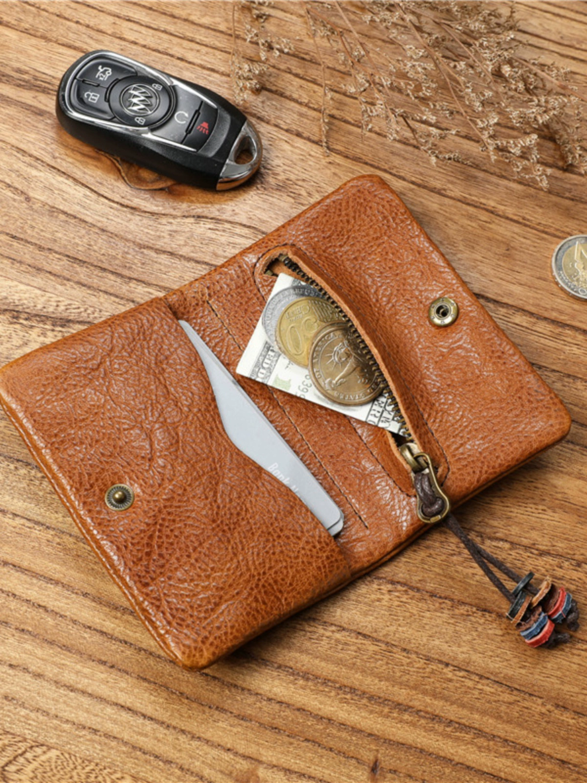 | nameOriginal | Retro men's vegetable tanned first-layer cowhide short wallet genuine leather buckle small wallet student casual simple coin purse |