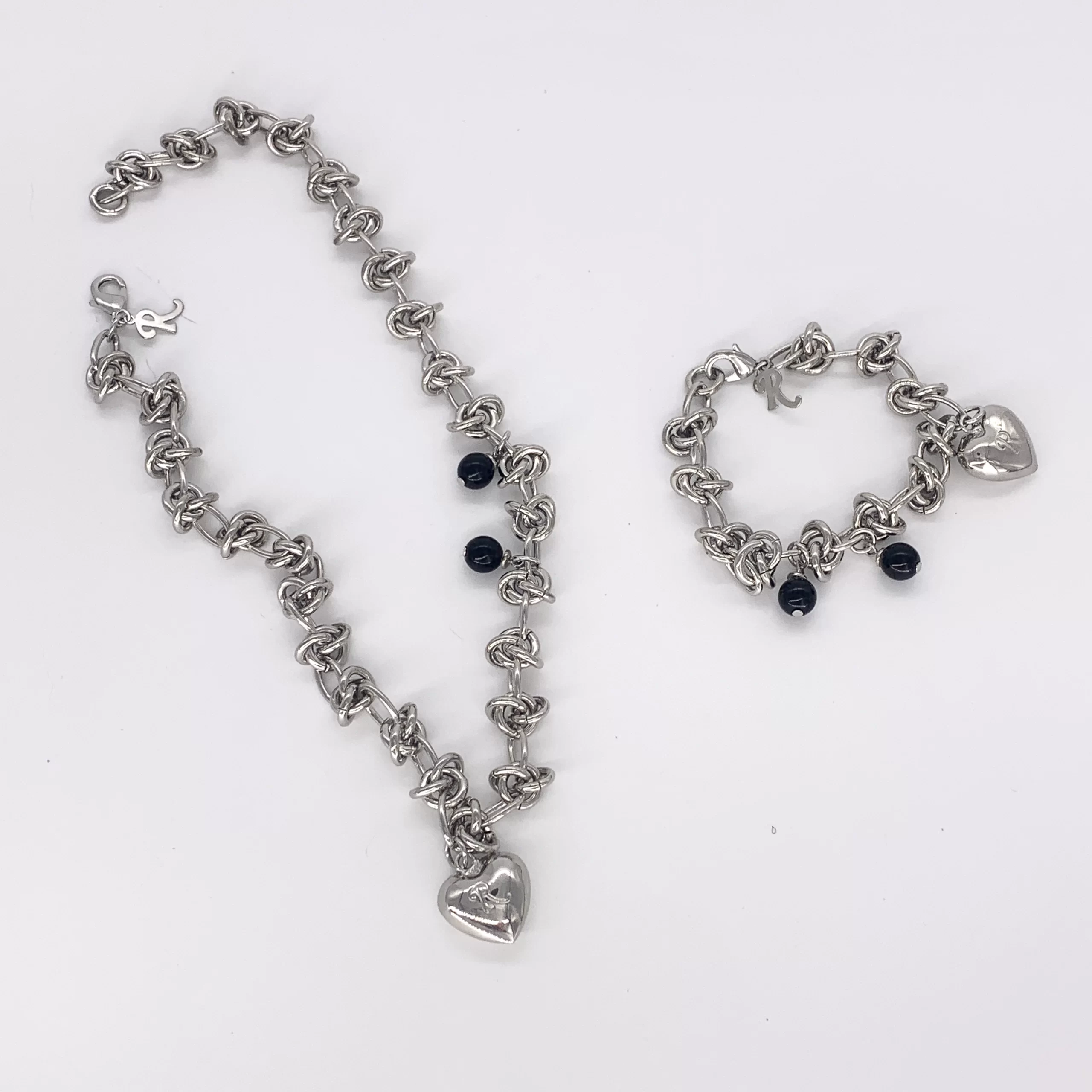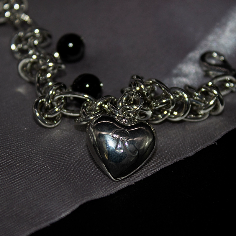 | nameOriginal | Retro metal future style new thorn love "R" marked big heart couple silver bracelet functional bracelet |