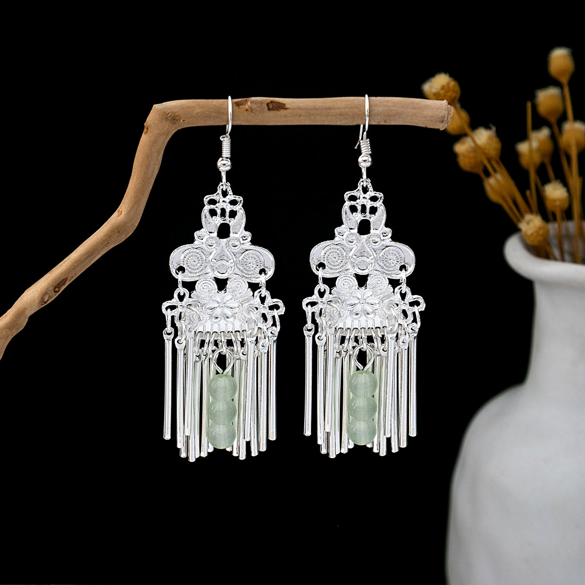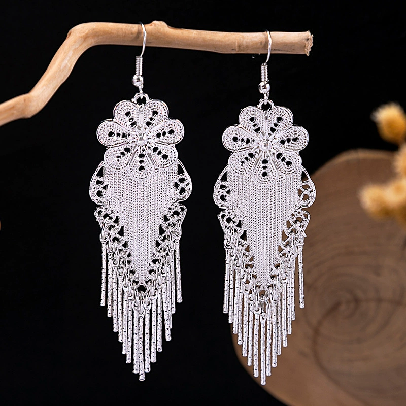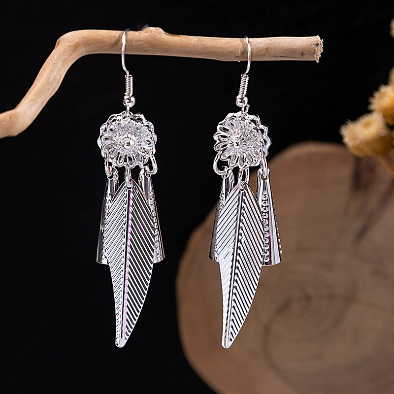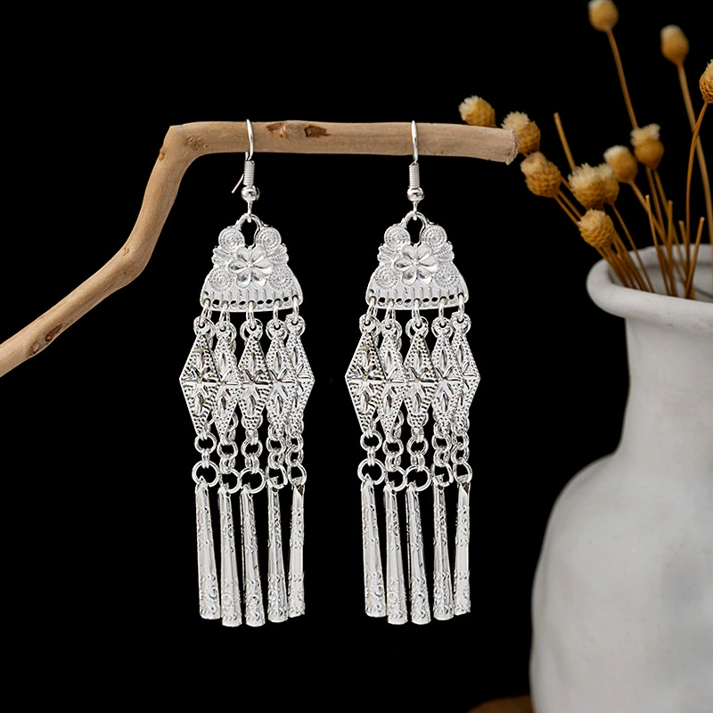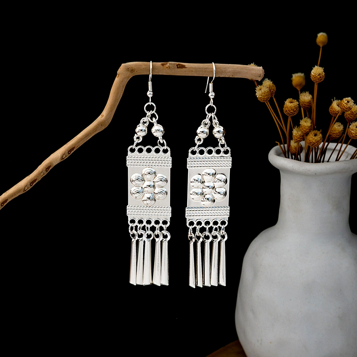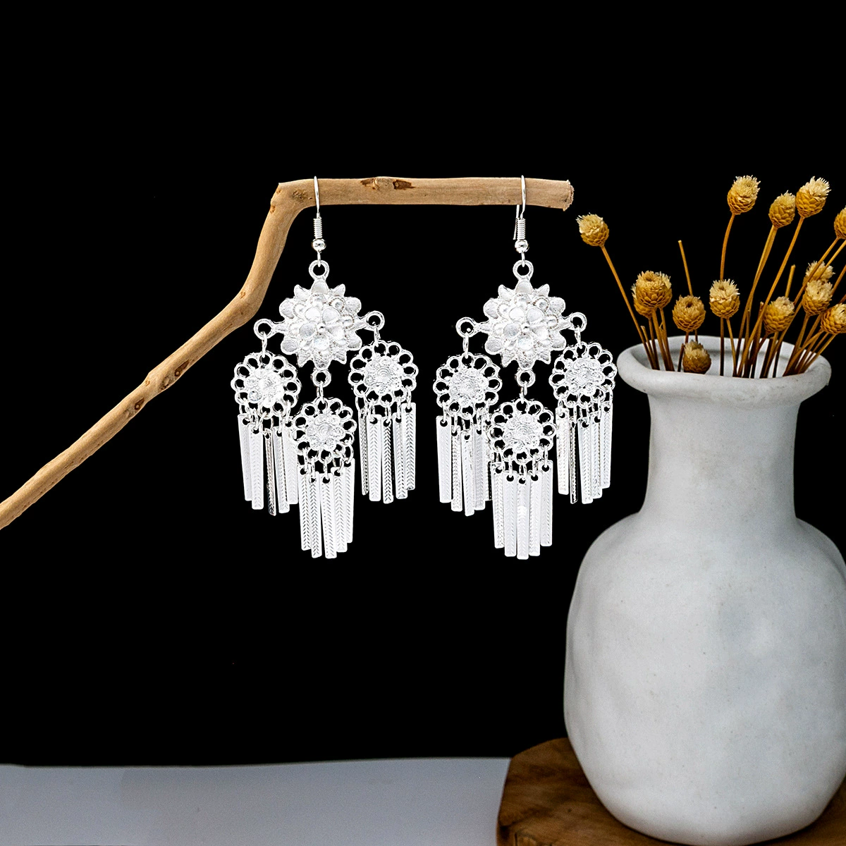 | nameOriginal | Retro Miao silver ethnic style earrings, personalized bohemian style flower earrings, long tassel earrings |