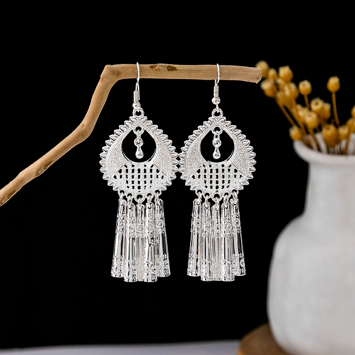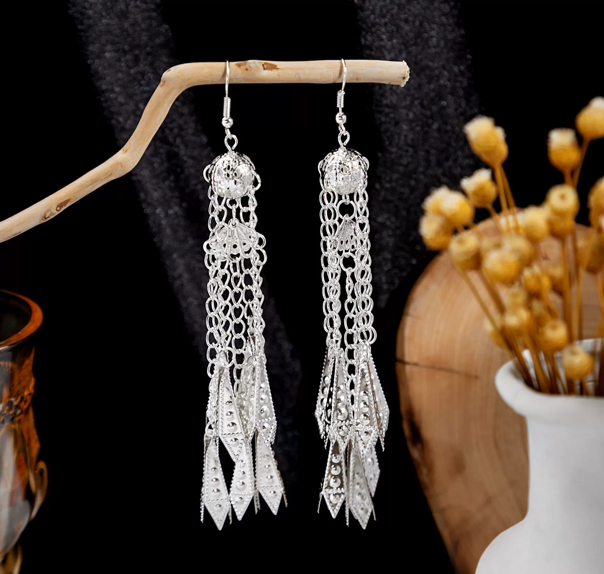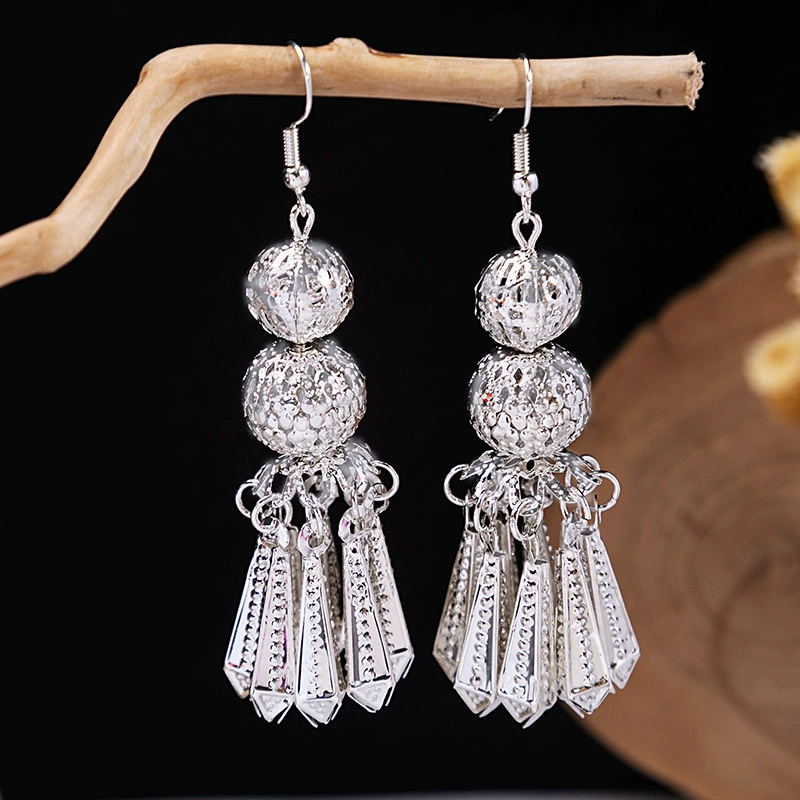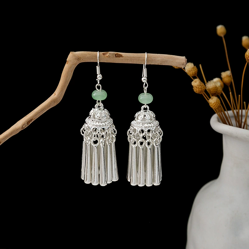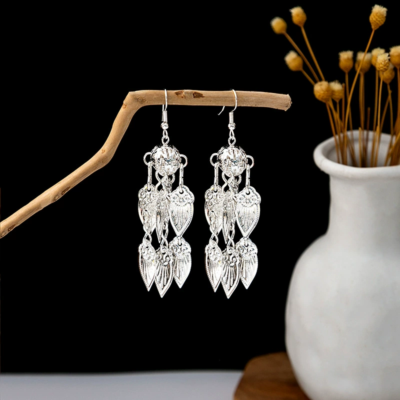 | nameOriginal | Retro Miao silver ethnic style earrings, personalized bohemian style flower earrings, long tassel earrings |