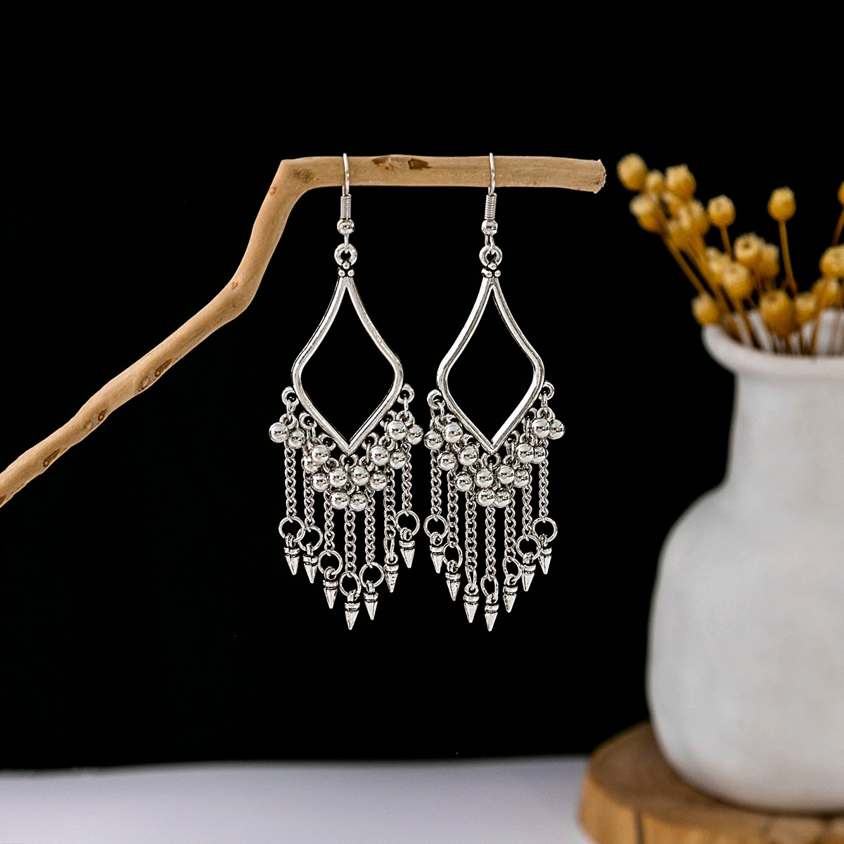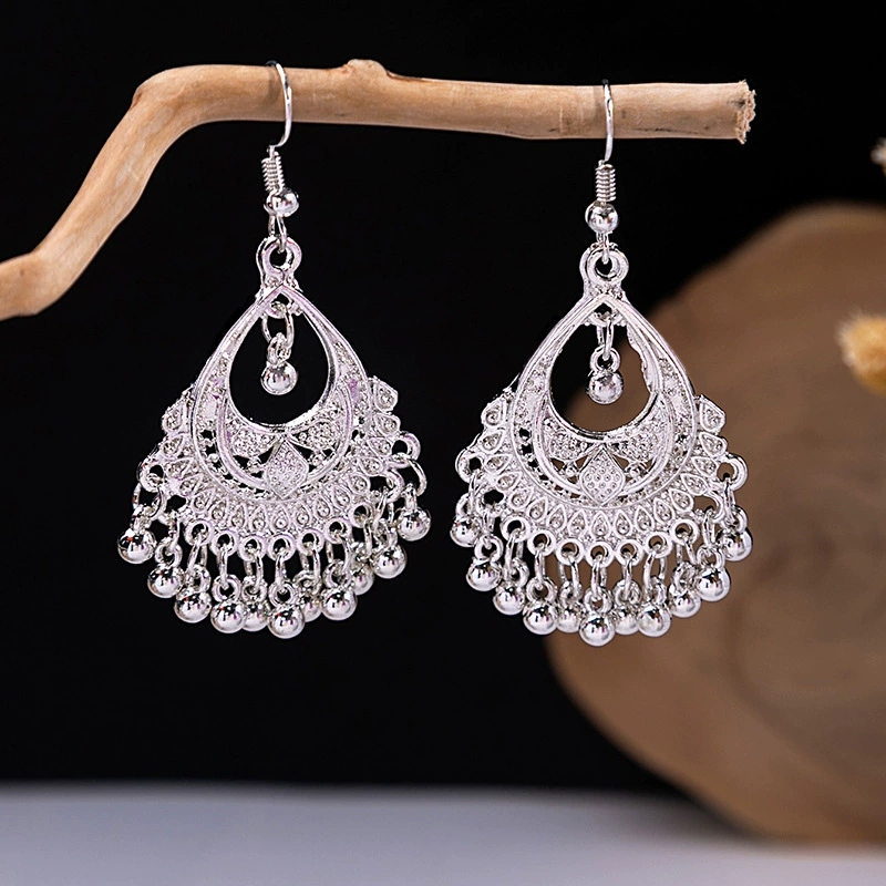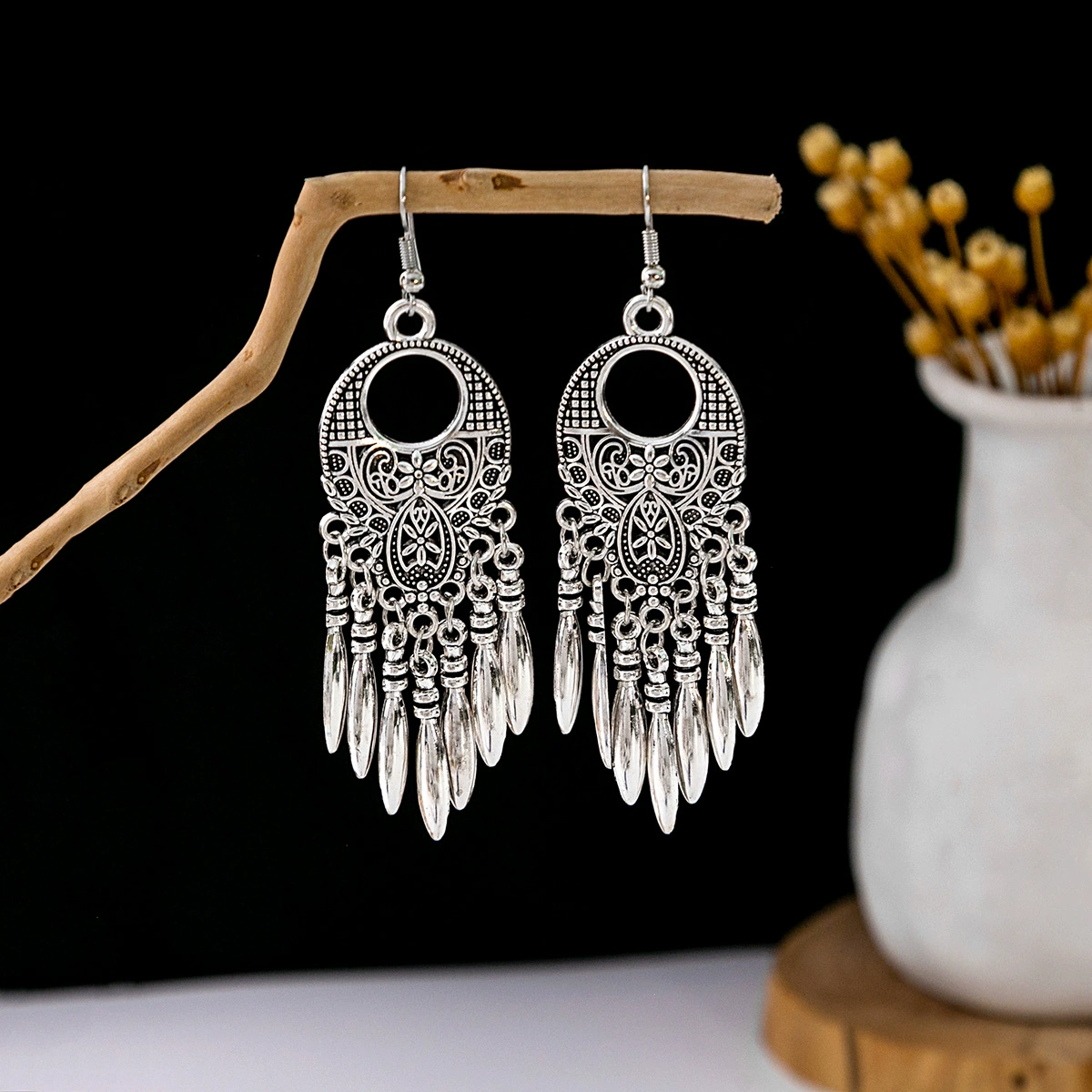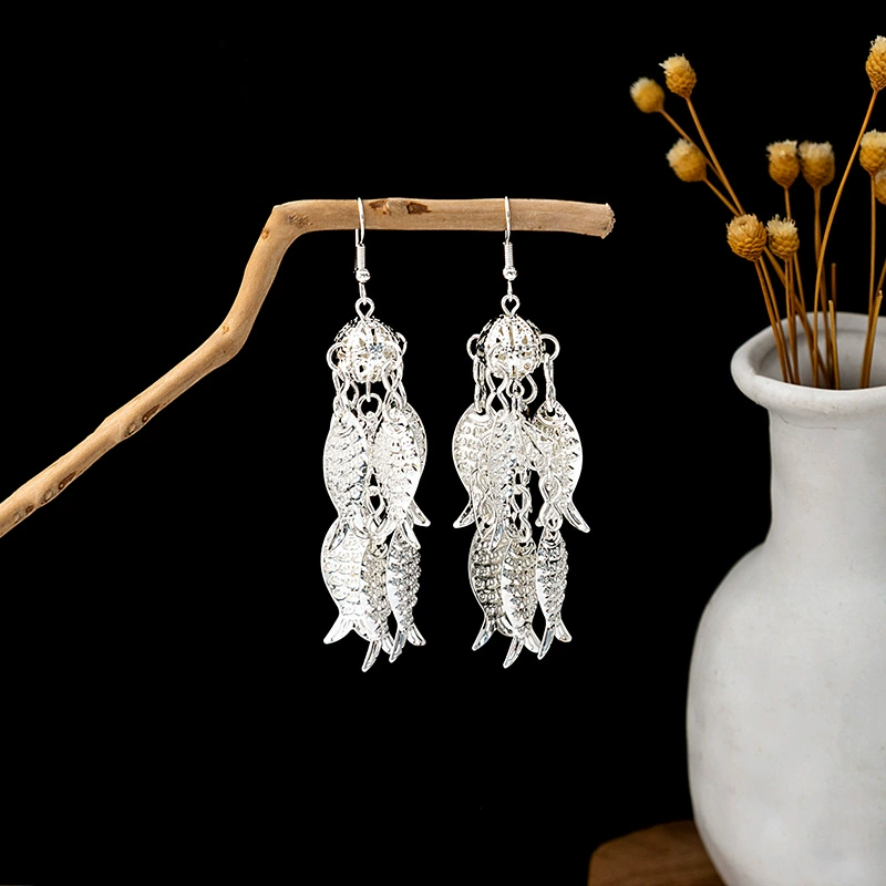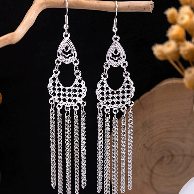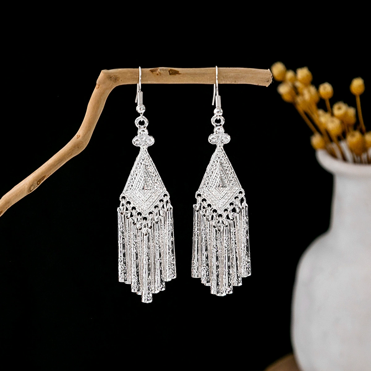 | nameOriginal | Retro Miao silver ethnic style earrings, personalized bohemian style flower earrings, long tassel earrings |
