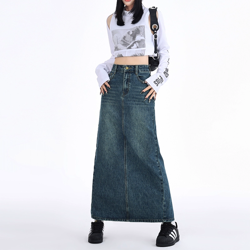 | nameOriginal | Retro mid-length summer style denim skirt |