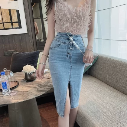 | nameOriginal | Retro mid-size women's summer front slit denim skirt |
