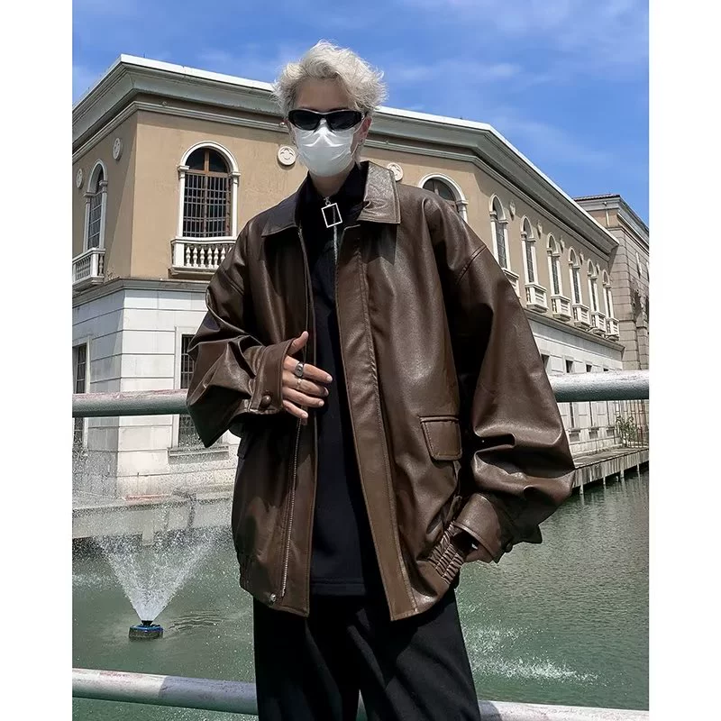 | nameOriginal | Retro motorcycle wear pu leather jacket men's spring and autumn ins trendy brand handsome high-end pilot leather jacket |