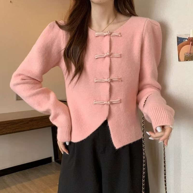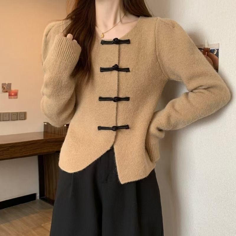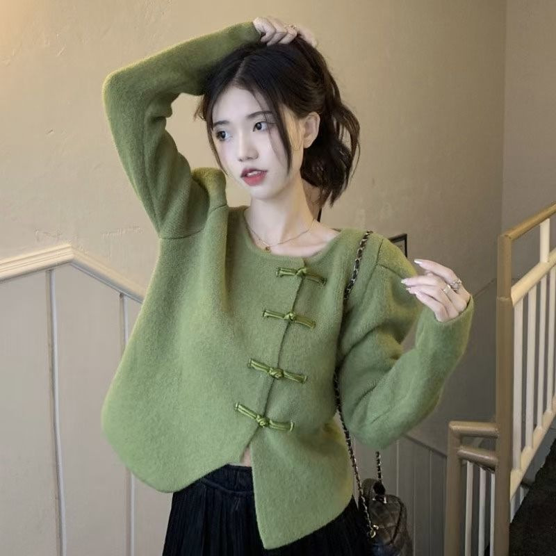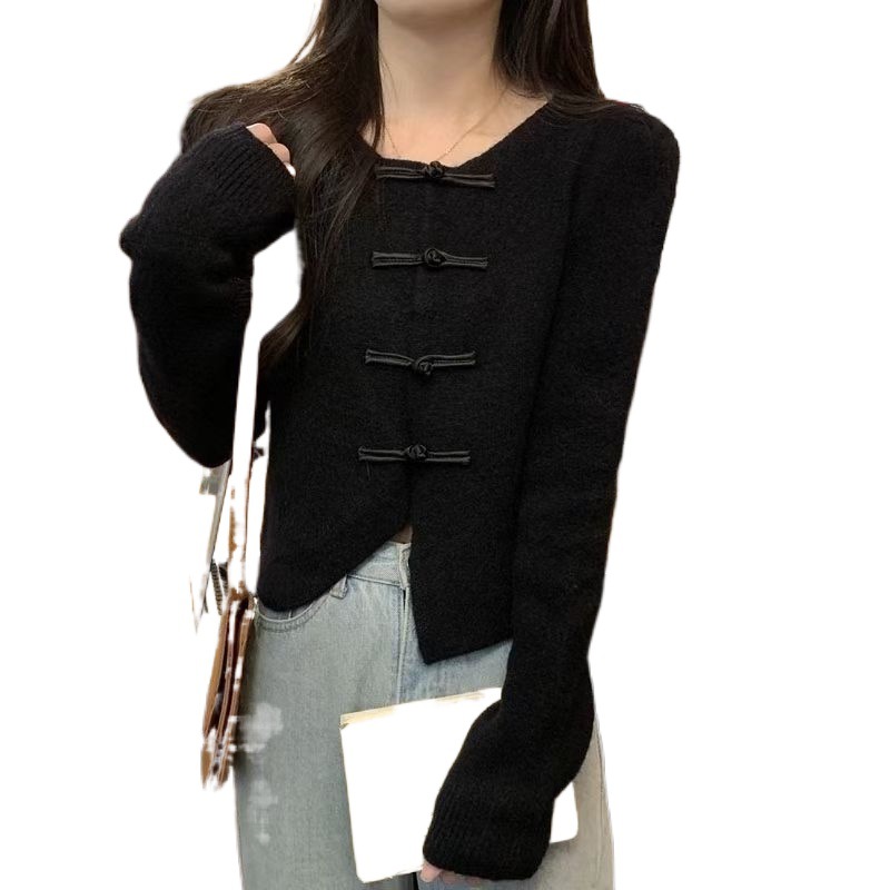 | nameOriginal | Retro new Chinese style buckle knitted cardigan women's spring design sense niche loose outer wear irregular short sweater |