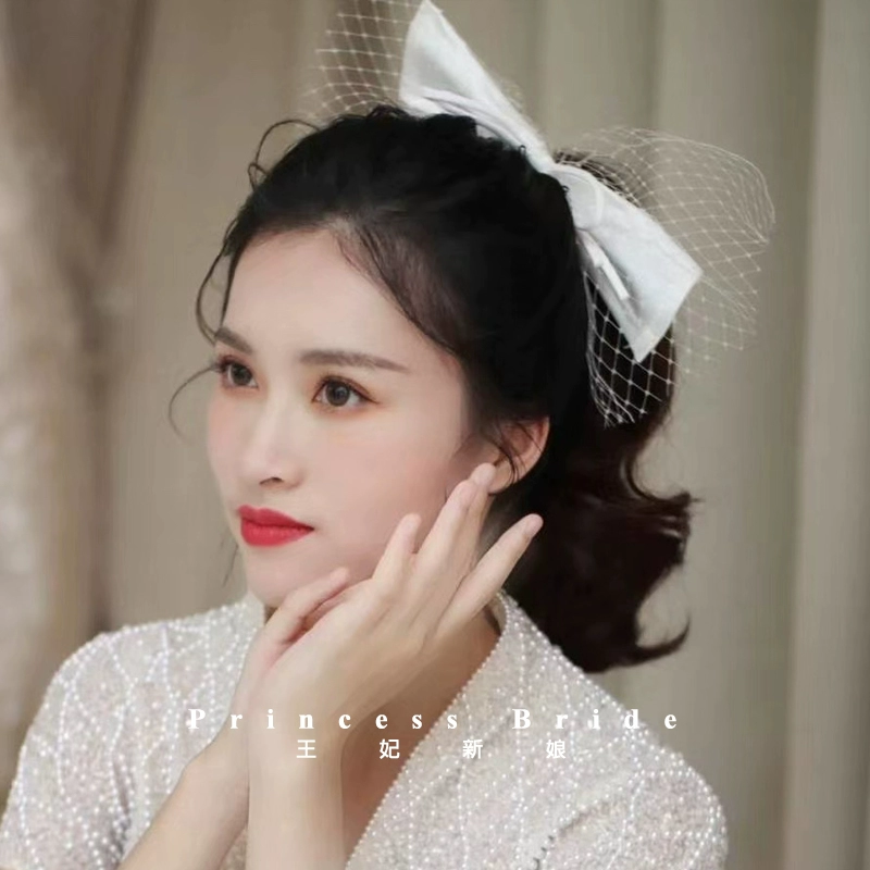 | nameOriginal | Retro new product handmade bow short veil bride wedding dress accessories studio photography makeup styling hair accessories |