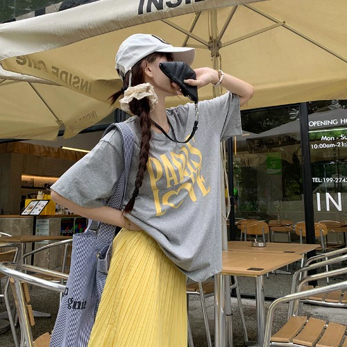 | nameOriginal | Retro niche letter yellow printed short-sleeved T-shirt |