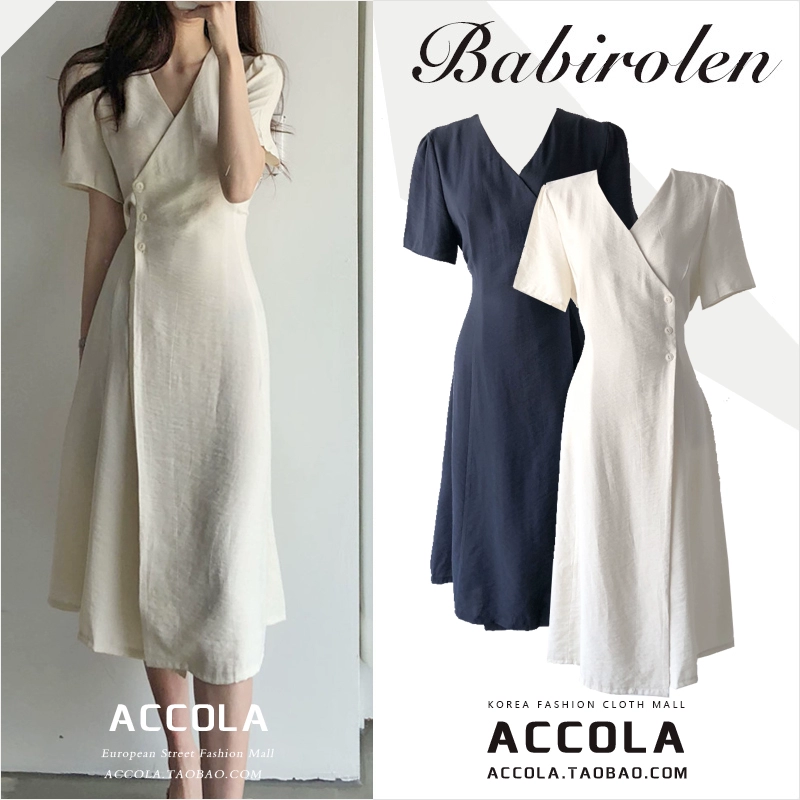 | nameOriginal | Retro niche v-neck slim waist short-sleeved dress |