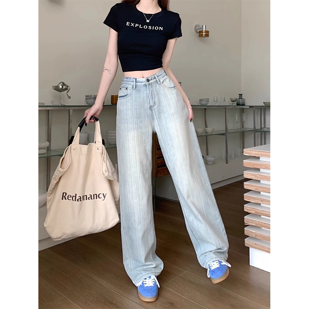 | nameOriginal | Retro nostalgic straight-leg washed high-waisted floor-length jeans |