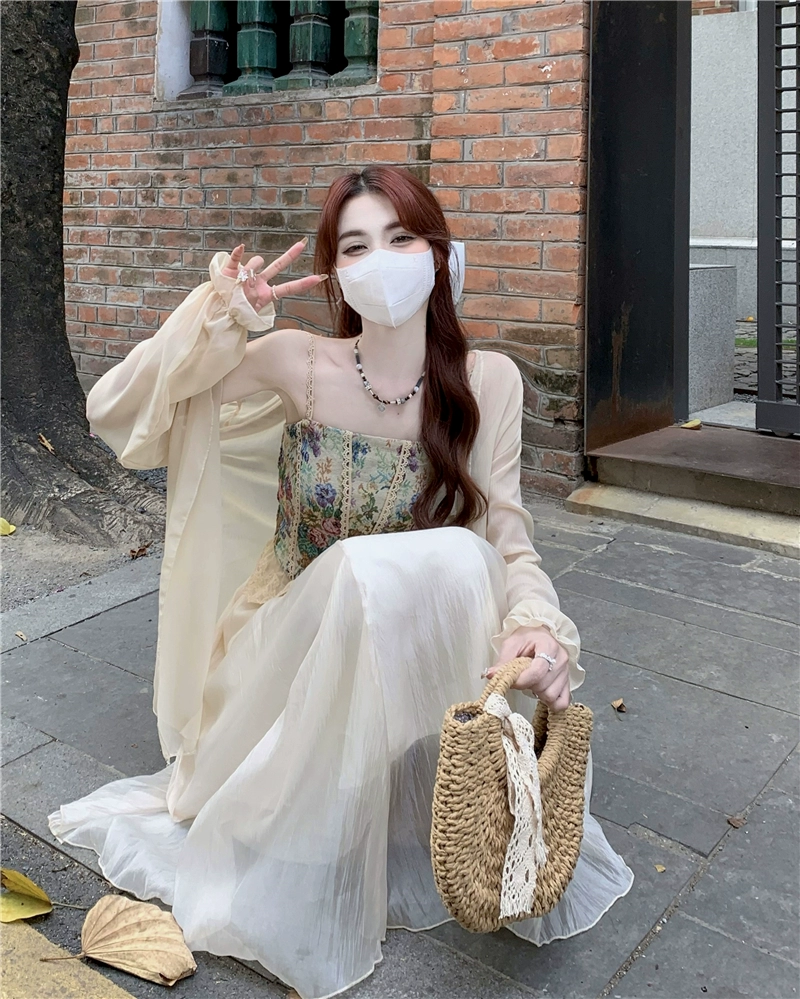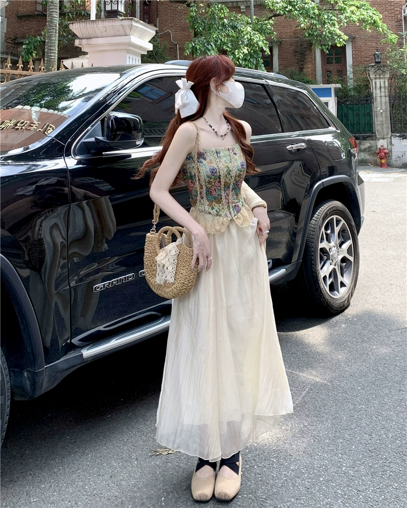 | nameOriginal | Retro oil painting sun protection shirt half length skirt floral suspenders |