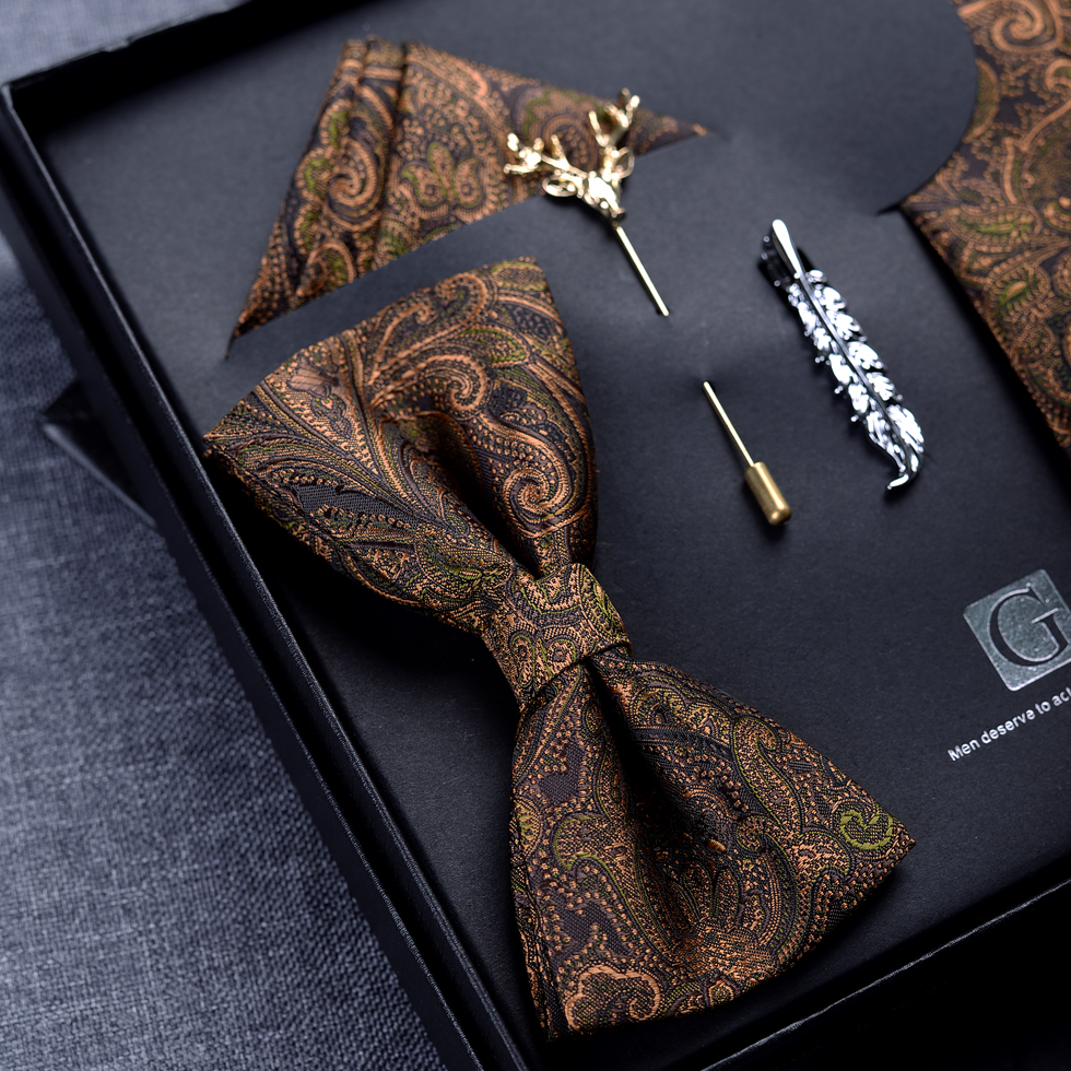 | nameOriginal | Retro pattern hand tie men's British Brown green casual jacquard high-end business formal suit box gift |