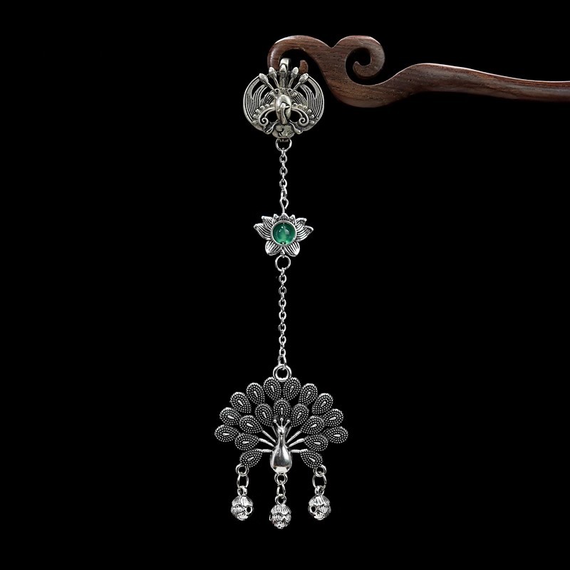 | nameOriginal | Retro Peacock open screen cheongsam placket Chinese style sterling silver tassel pendant classical pendant ancient style hanfu accessories for women |